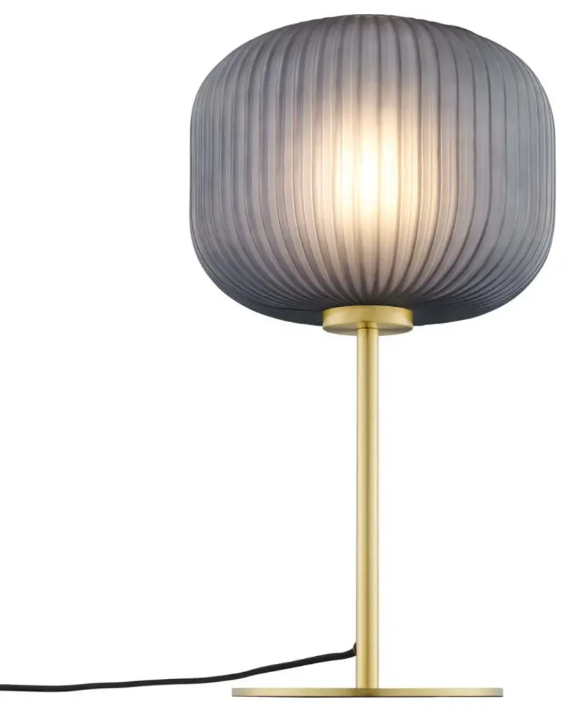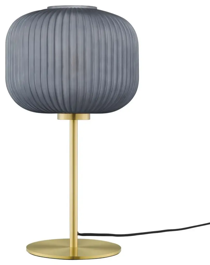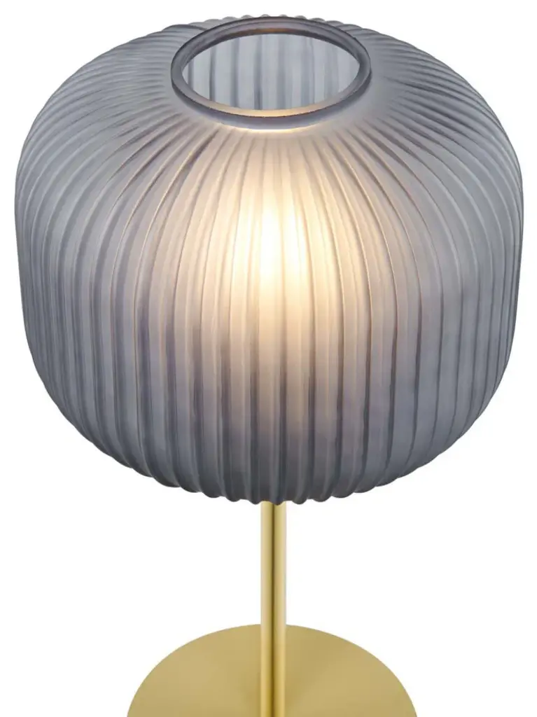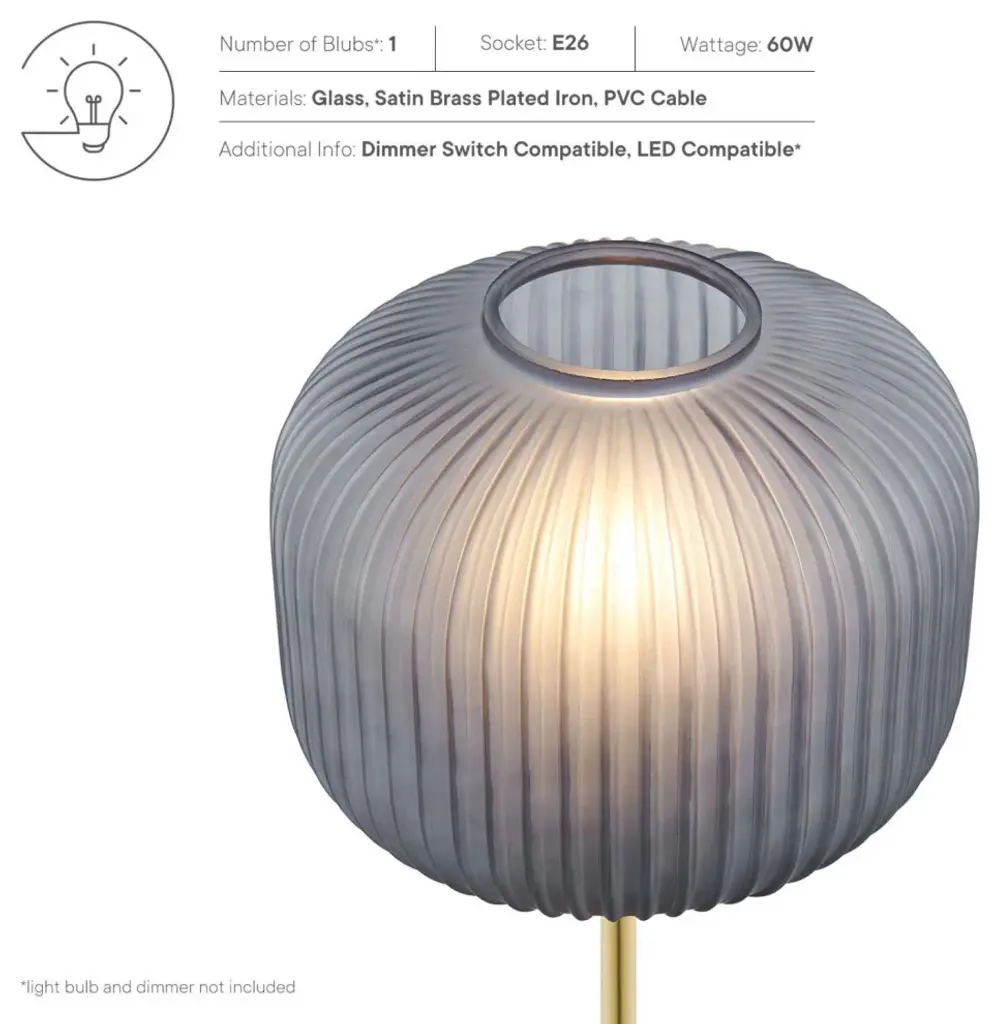 Introduce lighting ingenuity and nuanced retro style into your home decor. The iconic shape of the Reprise Glass Sphere Table Lamp brings structure, texture, and a warm transparent glow to your bedroom, living room, entryway, or office. The opaque glass shade is softly textured with embossed horizontal lines creating a commanding lamp for the living room in mid-century modern, contemporary, or eclectic settings. With rich satin brass accents, this side table lamp combines elegance and functionality. Reprise is a dimmable bedside lamp (dimmer switch not included), requiring 1 E26 60W max bulb or LED equivalent (not included). Convenient access on/off switch with a black power cord. Assembly required. Clean with a soft, damp cloth.Table LampOpaque Glass ShadeSatin Brass BaseBlack Cable With On/Off SwitchBulb: 1 E26 60W Max (Not Included)Dimmable (Switch Not Included)LED Compatible; Assembly RequiredOverall Product Dimensions: 10"L x 10"W x 17.5"HShade Dimensions: 10"W x 8"HBase Dimensions: 10"L x 8"WLength of Cord: 71"LWeight (LBS): 5