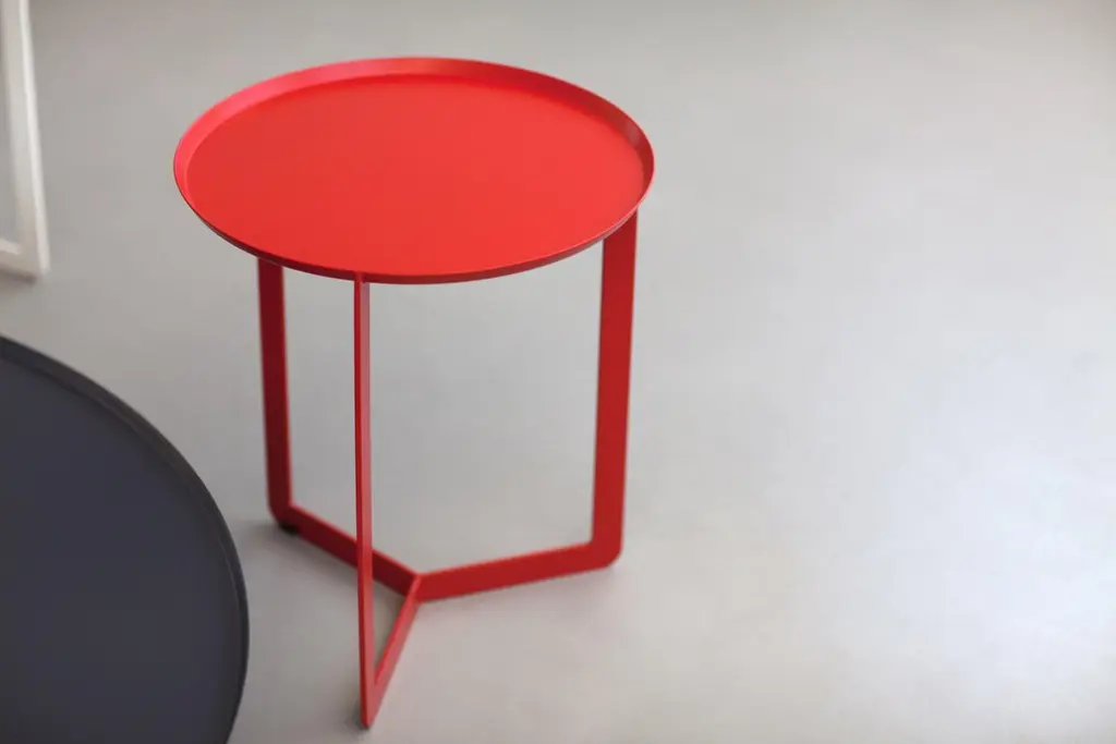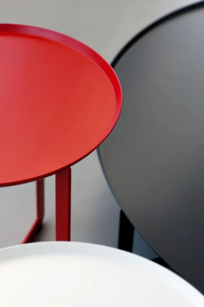 Table in metal "Round" D40."Round" is the elegante collection of coffee and side tables with three bases.Five sizes, from the smallest (D40) to the biggest (D120) for decoration your home and office.Tray with edge 1,5 cm. Thickness 2 mmAvailable in all standard colors, in indoor and outdoor versionsMeasures: H: 46 cm, d: 40 cmMD009.