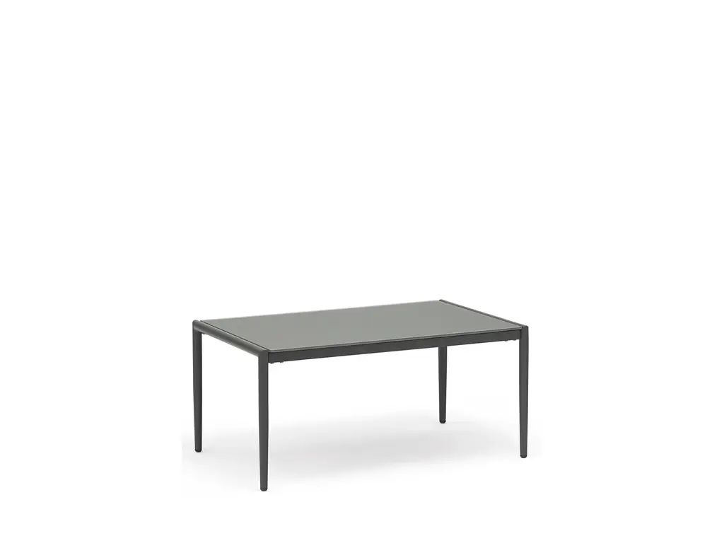 Table low August is an powder-coated aluminum outdoor rectangular low table.The August collection by Vincent Van Duysen for Serax is made of aluminium and it is available with a black, grey or eucalyptus green powder coating. This makes it suitable for both indoor and outdoor use. The chairs, lounge chair, and tables articulate the sheer simplicity of the monastic life they were inspired by.Vincent Van Duysen's vision is unambiguous: a design object should never clamour for attention, it should be at one with its surroundings. And that is precisely what his Outdoor collection for Serax does. The minimalist aluminium table with powder coating was given a strong, pure design. Free from unnecessary details, and in subdued tones. With a vision that results from an unbridled curiosity, Vincent Van Duysen always creates an all-inclusive atmosphere in which he seamlessly interweaves architecture, interior design, and design objects. A vision to which he also stayed true when he was commissioned to convert the monastery of the former military hospital in Antwerp into a hotel. For the terrace he designed the August collection, a series of minimalist chairs that effortlessly link the history of the environment to a modern interpretation. August by Vincent Van Duysen for Serax is made of powder coated aluminium, available in muted shades. This makes it suitable for both indoor and outdoor use. The chairs, lounge chairs, sun loungers, tables and stools articulate the sheer simplicity of the monastic life they were inspired by. The wider, slightly lower proportions of the lounge chairs are of this day and age and contribute to modern-day comfort.