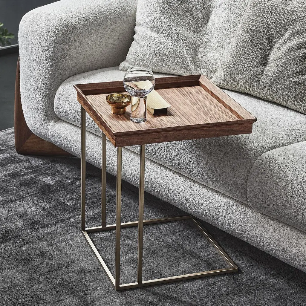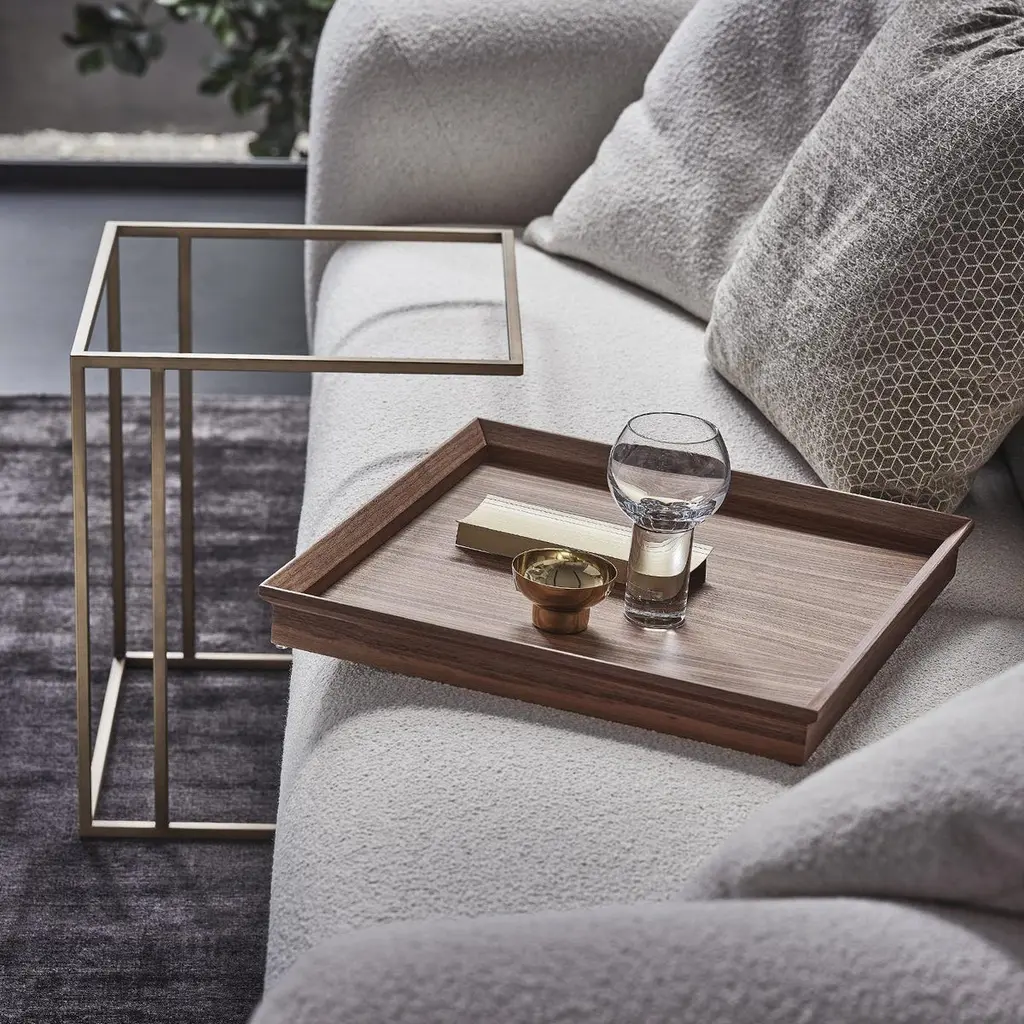 Side table Takahara brass with solid brass base in brushed finish and with solid walnut wood tray.