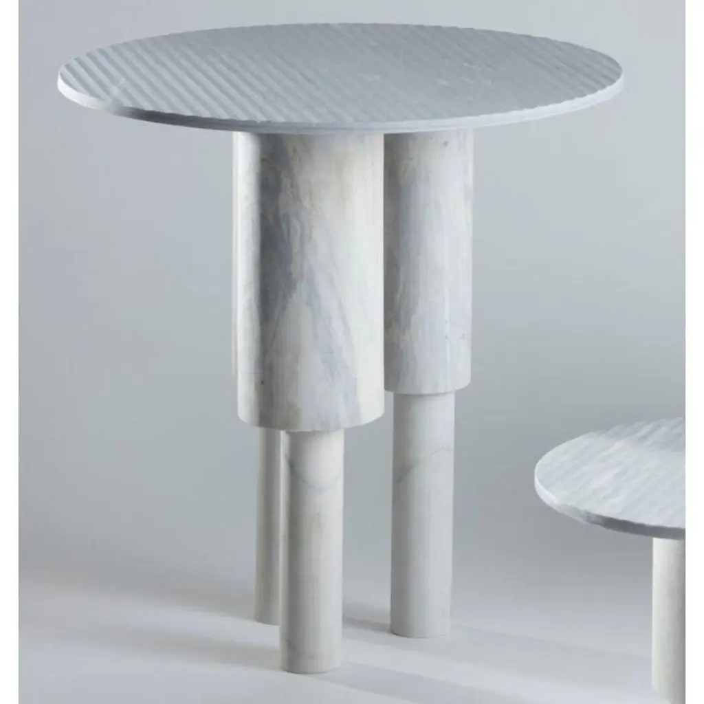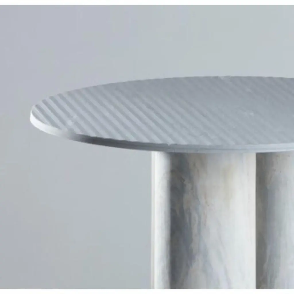 Tall Game of Stone Side Table, Blue by Josefina MunozGame of Stone CollectionDimensions: H55 x Ø45cmMaterial: Marble Palissandro BlueAvailable in: Low, Small and XS sizes. Interpreting the expressiveness of stone offcuts, from a block to a fragment and reintegrate them into a dynamic, organic process. A poetic and delicate vision of Josefina Muñoz and Pietre Trovanti, that explores the elegance that comes to life from the imperfect stone, turning into a home decor collection.In GAME OF STONE Josefina Muñoz, designer based in Geneva, Switzerland, transform an uneven block into a handcrafted collection of small tables with different heights, alternating in a play of shapes and compositions with a playful character. The finishing of the surface, in the light or in the shade, create rhythmic configurations. The work of Geneva-based Argentine designer Josefina Munoz, takes a macro perspective to the world of contemporary design and the influential sometimes seemingly distant factors that determine the industry’s course. With training in Design for luxury and Craftmanship, she designs with a keen sense of underlying meanings and symbolism that go hand in hand with quality. Nominated for Swiss Design Awards 2019, Winner of the Art & Design Indosuez Award 2019 of the Art and Crafts Switzerland Association, she participated in exhibitions around the world, including the Milan Design Week (2016, 2017, 2018) “De Mains de Maîtres” in Luxembourg (2017), the London Design Festival at the Victoria and Albert Museum in 2015 and Collect 2019 at Saatchii Gallery in London. Her personal work in close partnership with true artisans in different fields, finding the particularities of individual expertises that offer a whole new world of artistic expressions. With her creations, she aspires to give the opportunity for the viewer to live a moment of serenity. As a designer, she seeks to inspire, inform and provide a voice to artistic professions such as ceramic, stone and glass, among others. After starting her own studio in 2016, she is perpetually seeking out new experiences and collaborations around the world.