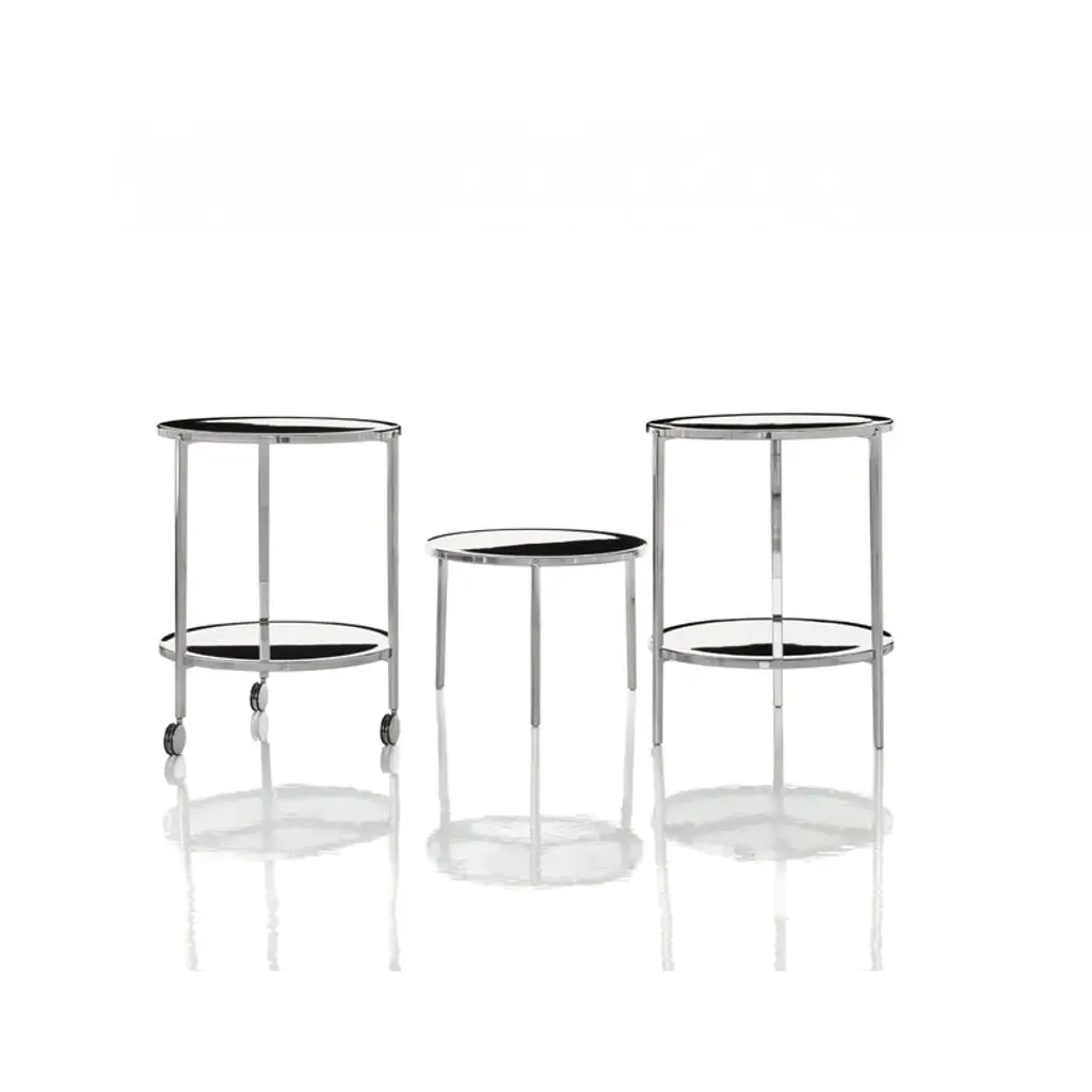 Magis' Tambour side table, designed by Ronan and Erwan Bouroullec, is a versatile two-tier table finding its place next to a sofa or an armchair, for instance. Constructed with a cast aluminum frame and polished tabletop, this side table pairs raw industrial esthetics with sleek and simple forms. With its dual tabletops, it provides ample space for coffee cups and candles, as well as a stack of your favorite magazines or books. Tambour tables are created to seamlessly blend into various environments, whether it's a vintage-inspired interior or a space embodying modern minimalism, in a private residence or perhaps a restaurant. Launched in 2012 and expanded in 2023, the Tambour collection reflects the Bouroullec brothers' exceptional ability to strike a balance between formal elegance and uncomplicated simplicity. The various sizes and shapes within the series also allow for delightful combinations.