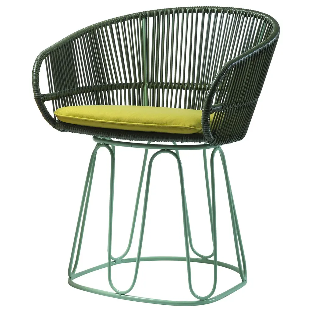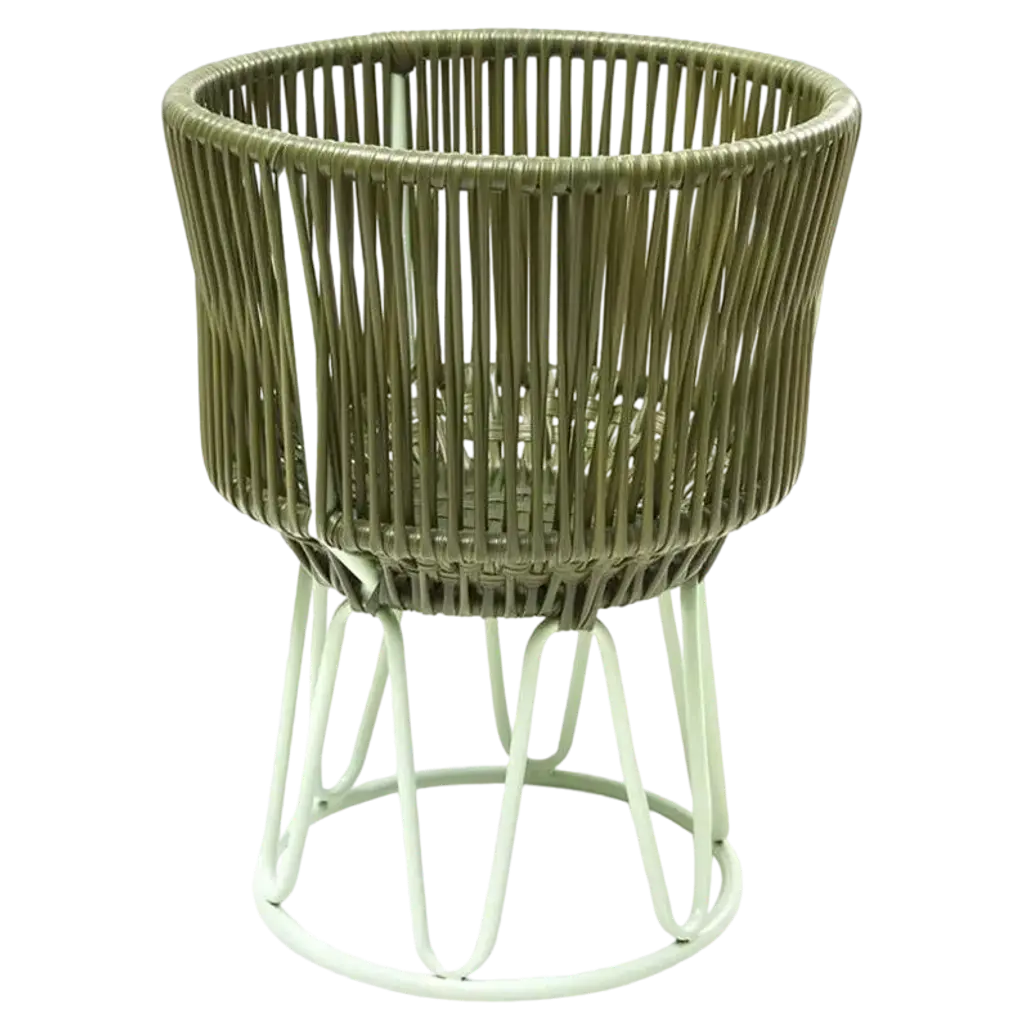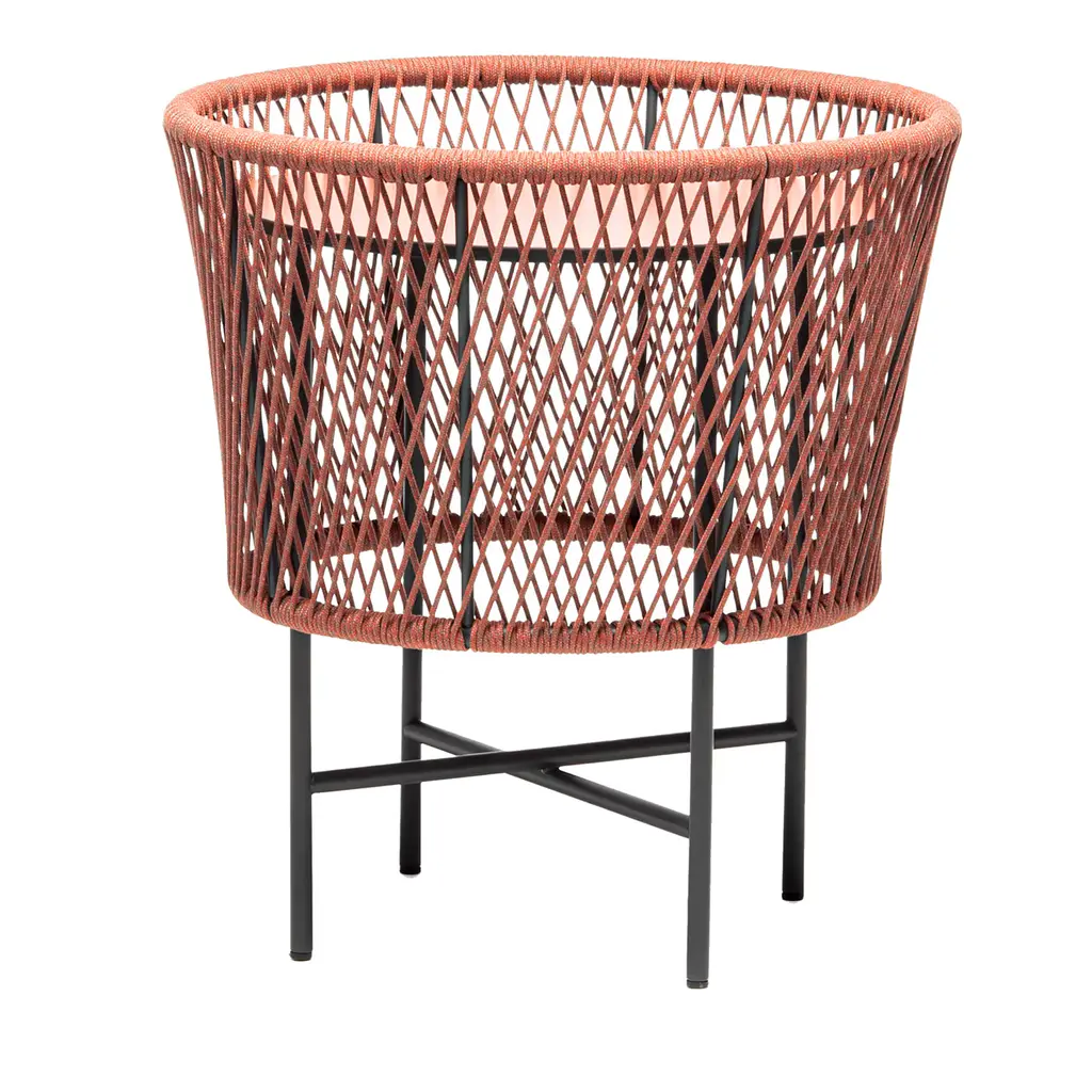 Fresh and artful, this round accent table owes its name - the Italian for 'drum' - to its imposing yet airy design enveloping its circular HPL top, characterized by an intriguing diamond pattern obtained by interlacing thin, green-hued marine ropes. The general structure in steel and powder-coated in anthracite gray results harmonious and its design airy. Apt for outdoor use, it comes in multiple color options available in the Artemest catalog.