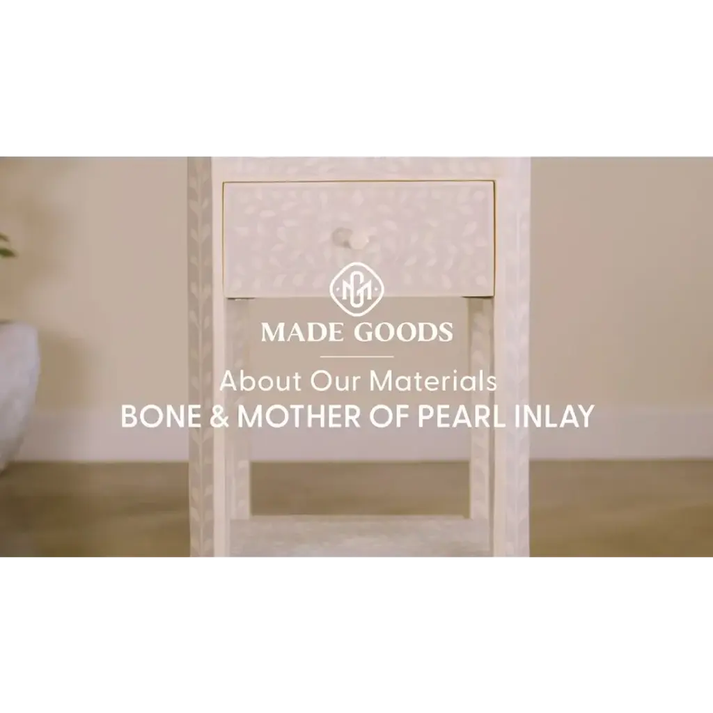 Tamsin Bleached White Teak/bone Inlay Side Table 30"l X 18"w X 24"h