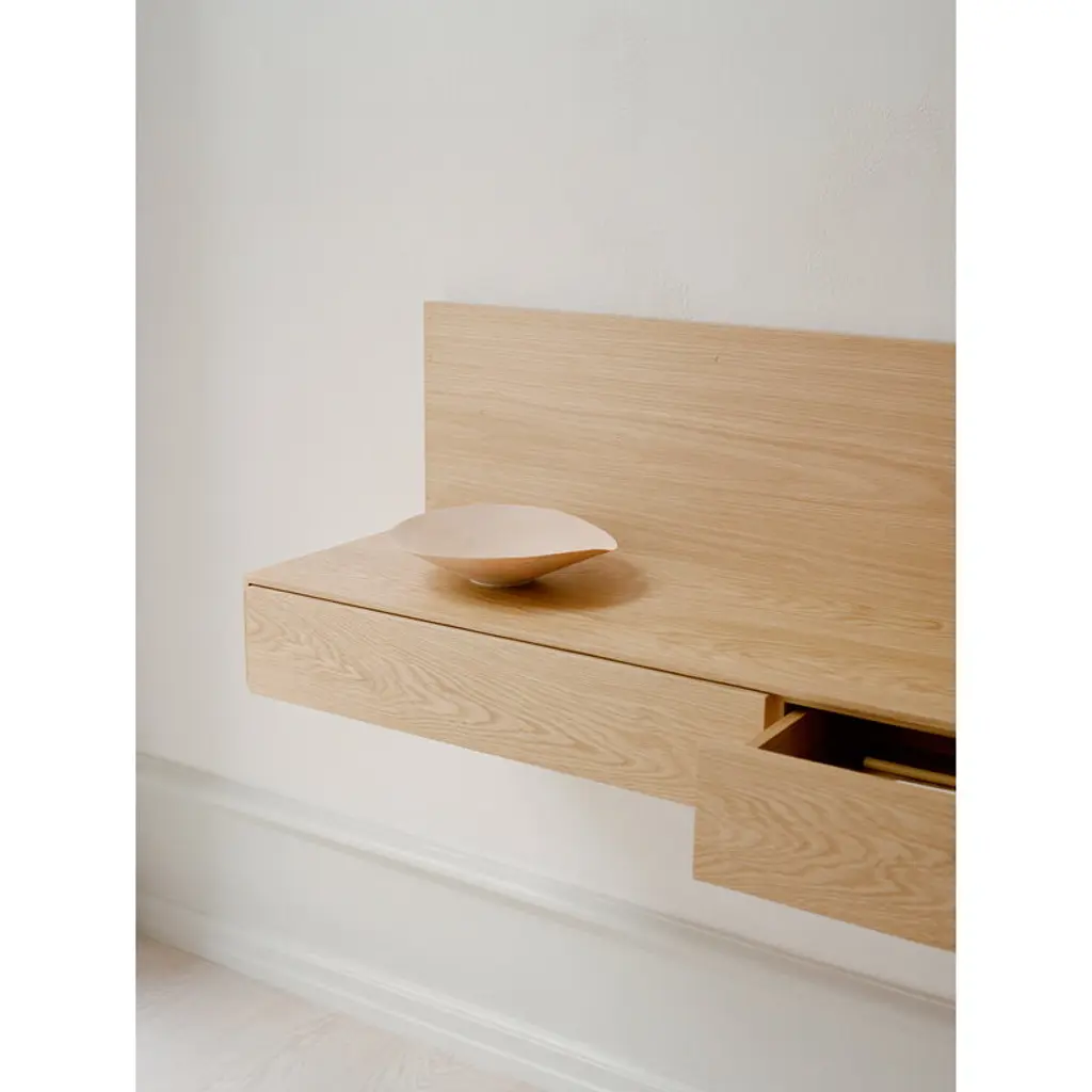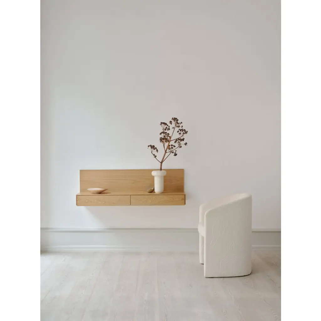 New Works’ Tana media module is a handy wall-mounted side table that provides extra storage without taking up any floor space. Made of wood veneer, the unit features two drawers for small items, while the top surface offers a stylish spot for a lamp, houseplants or decorative objects. The Tana collection reflects architect Rikke Rützou Arnved’s vision of simple, timeless design. Clean lines and handle-free fronts highlight the natural beauty of the wood, and the wall-mounted structure gives the shelves and tables in the series a light, floating appearance. Whether placed alone or in a group, Tana furniture brings an airy sense of harmony to any interior.