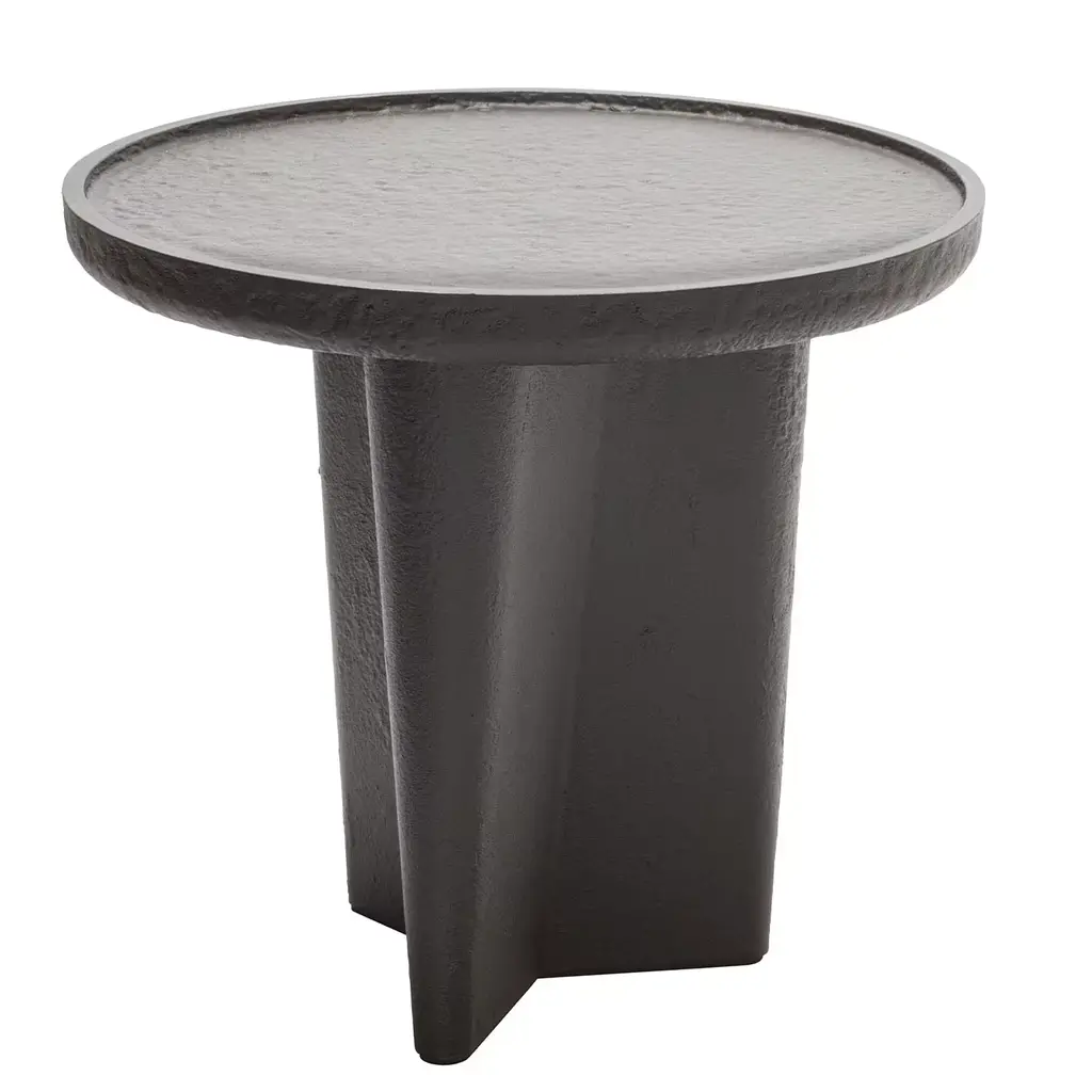 A stately and elegant design to complement contemporary interiors, this side table is handmade of cast bronze, exuding a natural and organic allure, enhanced with the downwardly tapered base which seamlessly accompanies the gaze toward the round top, also ideal as a display unit. Please consult the Concierge for more details and customization options.