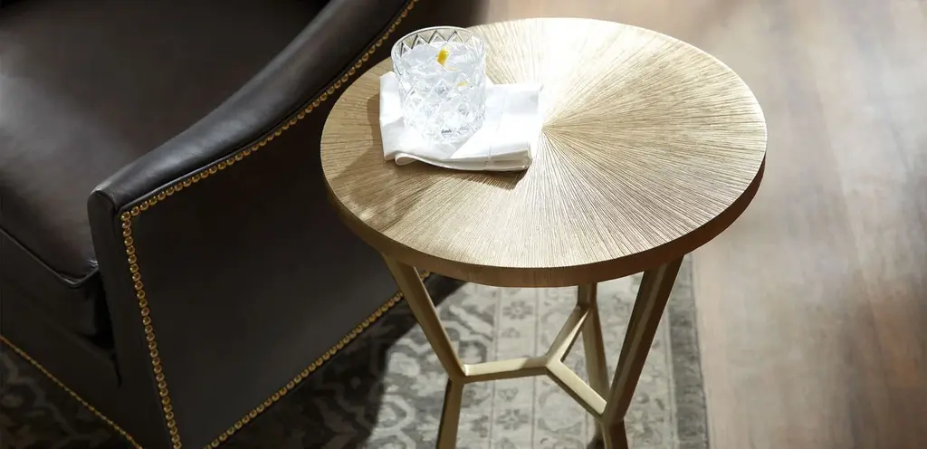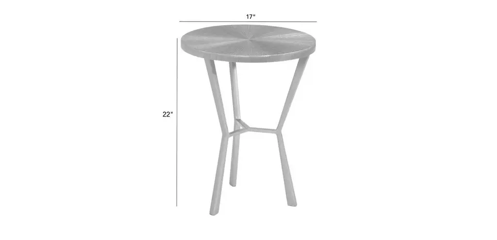 The Tasha aluminum accent table is like jewelry for your décor. It has a shimmering champagne-colored finish; to create its textured top, artisans cast the aluminum, rake the metal while it's cooling, and apply the champagne finish by hand. Use it as a side table in your living room or as a complement to your bedroom reading nook. Wherever it's placed, this small aluminum table makes a big style statement.