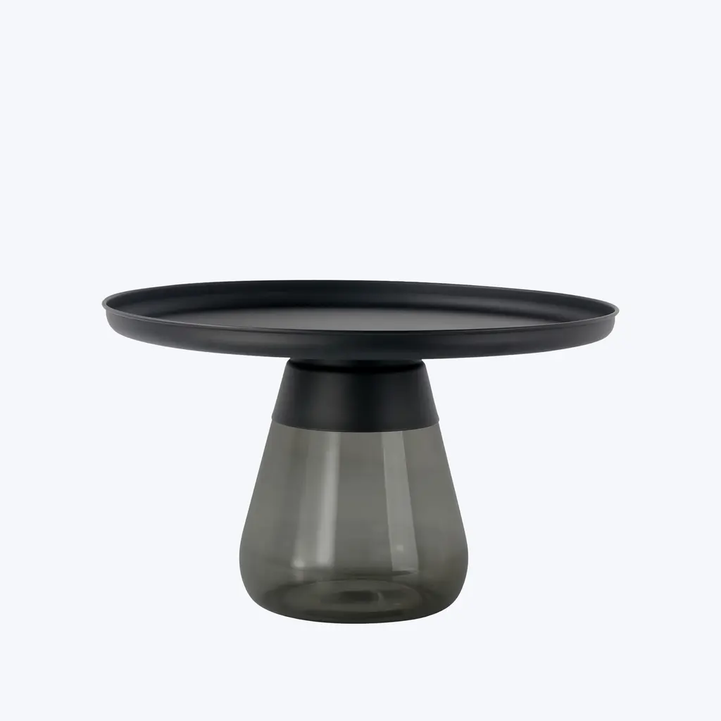 Crafted from hand-blown glass and featuring lightweight spun aluminum tops, the Tempest Side Table offers a perfect blend of sophistication and functionality. Available in two sizes, these tables can be paired and nested together seamlessly, making a striking statement or standing gracefully on their own. Choose from smoked glass or transparent green bases to suit your style, and select between tall tops or low options in powder-coated matte black or brushed gold electroplate finishes. With such customizable features, the Tempest Side Table allows you to curate your space with precision and flair.
