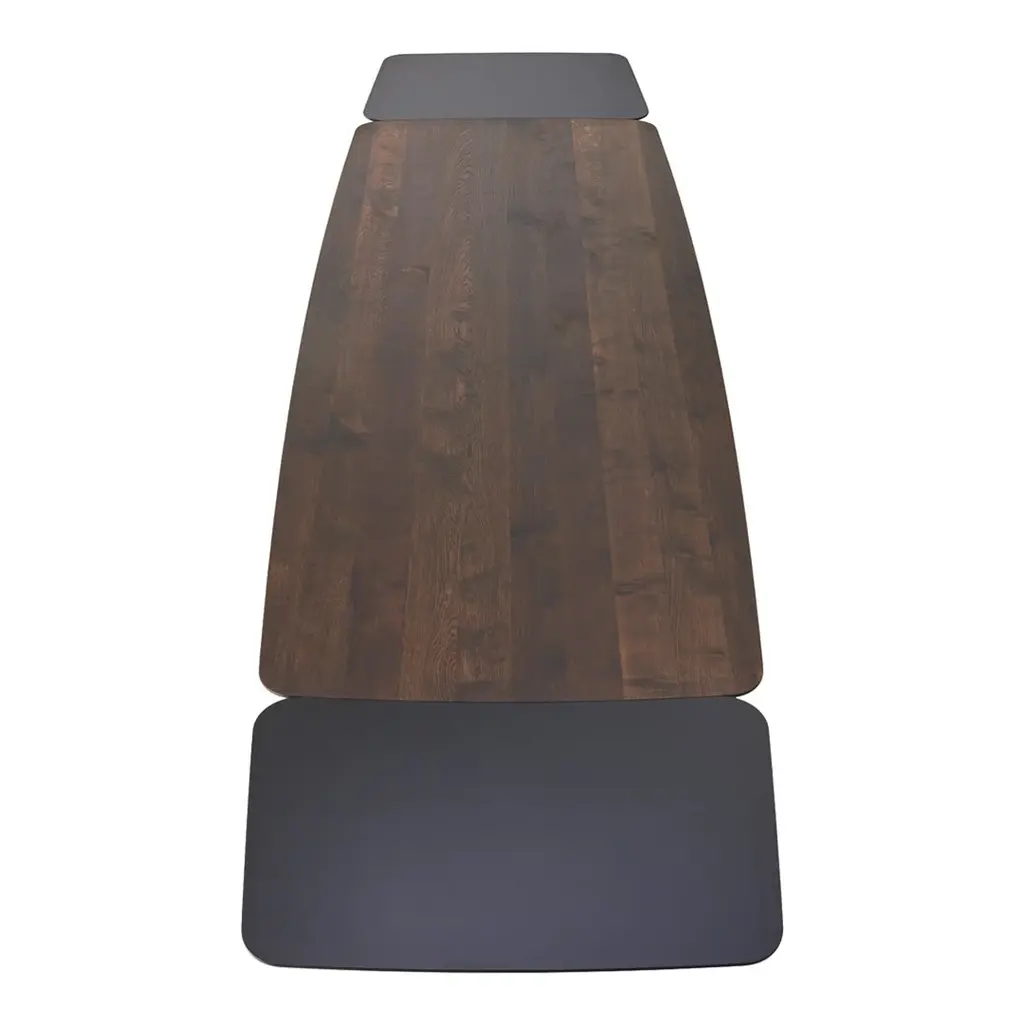 dk3 was among the first brands to introduce the plank table to the Scandinavian market back in 2009, and with the aim to take this design heritage to the next level, dk3 founder Jacob Plejdrup has developed the anniversary table TEN TABLE in cooperation with Danish designer Christian Troels. The designs of Christian Troels are characterized by a great level of details and craftsmanship accuracy, which, in the TEN TABLE, is perfectly merged with Jacob Plejdrup's basic ideas on large dining tables, such as highlighting the natural beauty of wood in a minimalistic way. The Table Top and table legs are made of solid wood, but despite the table's heaviness in size and weight, it still has a lightness, which is emphasized by the refined crafted details like the beautiful vertical grooves of the legs and the distinctive, organic-shaped Table Top. The slightly curved shape of the Table Top does not have any straight lines at all, and in combination with the sloping table edge, it looks like the Table Top is constantly moving. The curving movement continues on the extension leaves, which completes the overall impression and gives the table a unique expression.