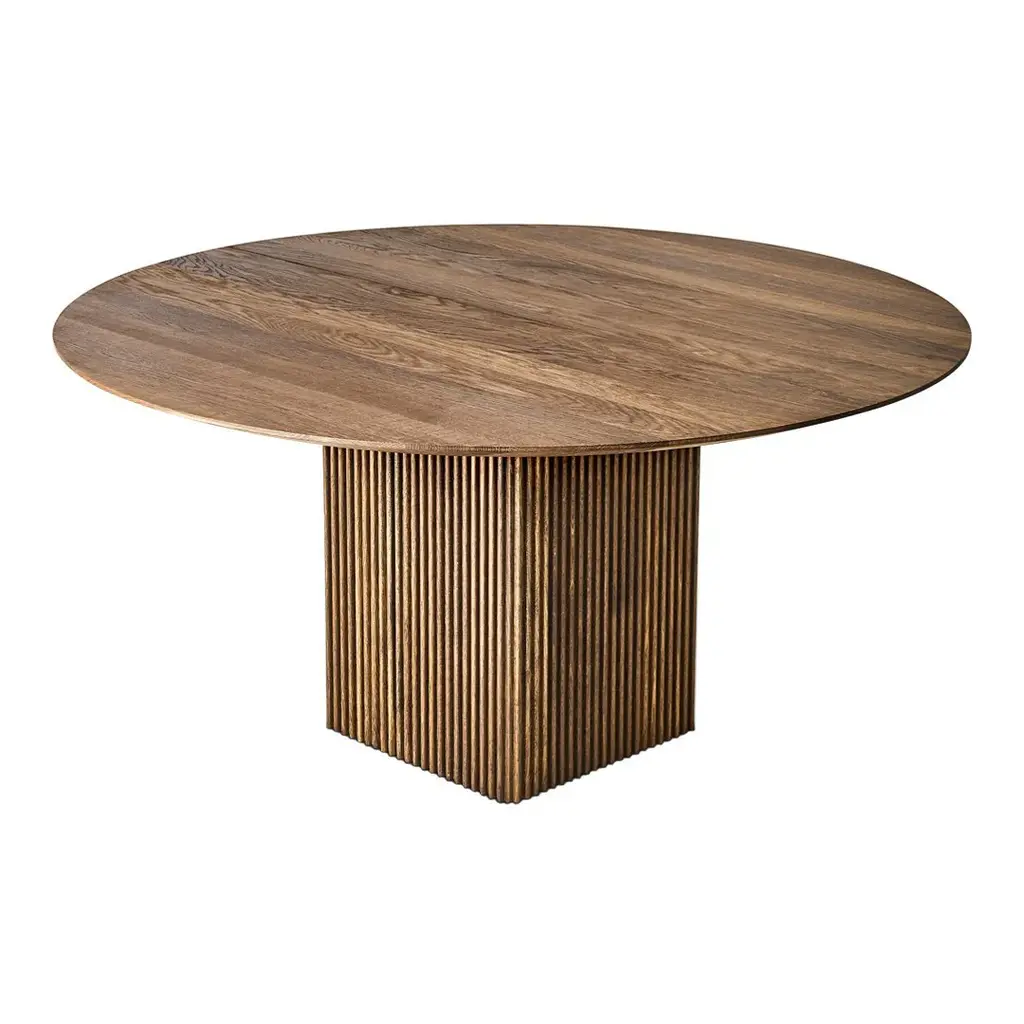 Each table is extendable for up to 2 extension leaves. Leaves are sold as singles, you must add quantity 2 if you would like 2. dk3 was among the first brands to introduce the plank table to the Scandinavian market back in 2009, and with the aim to take this design heritage to the next level, dk3 founder Jacob Plejdrup has developed the anniversary table TEN TABLE in cooperation with Danish designer Christian Troels. The designs of Christian Troels are characterized by a great level of details and craftsmanship accuracy, which, in the TEN TABLE, is perfectly merged with Jacob Plejdrup's basic ideas on large dining tables, such as highlighting the natural beauty of wood in a minimalistic way. The Table Top and table legs are made of solid wood, but despite the table's heaviness in size and weight, it still has a lightness, which is emphasized by the refined crafted details like the beautiful vertical grooves of the legs and the distinctive, organic-shaped Table Top. The slightly curved shape of the Table Top does not have any straight lines at all, and in combination with the sloping table edge, it looks like the Table Top is constantly moving. The curving movement continues on the extension leaves, which completes the overall impression and gives the table a unique expression.