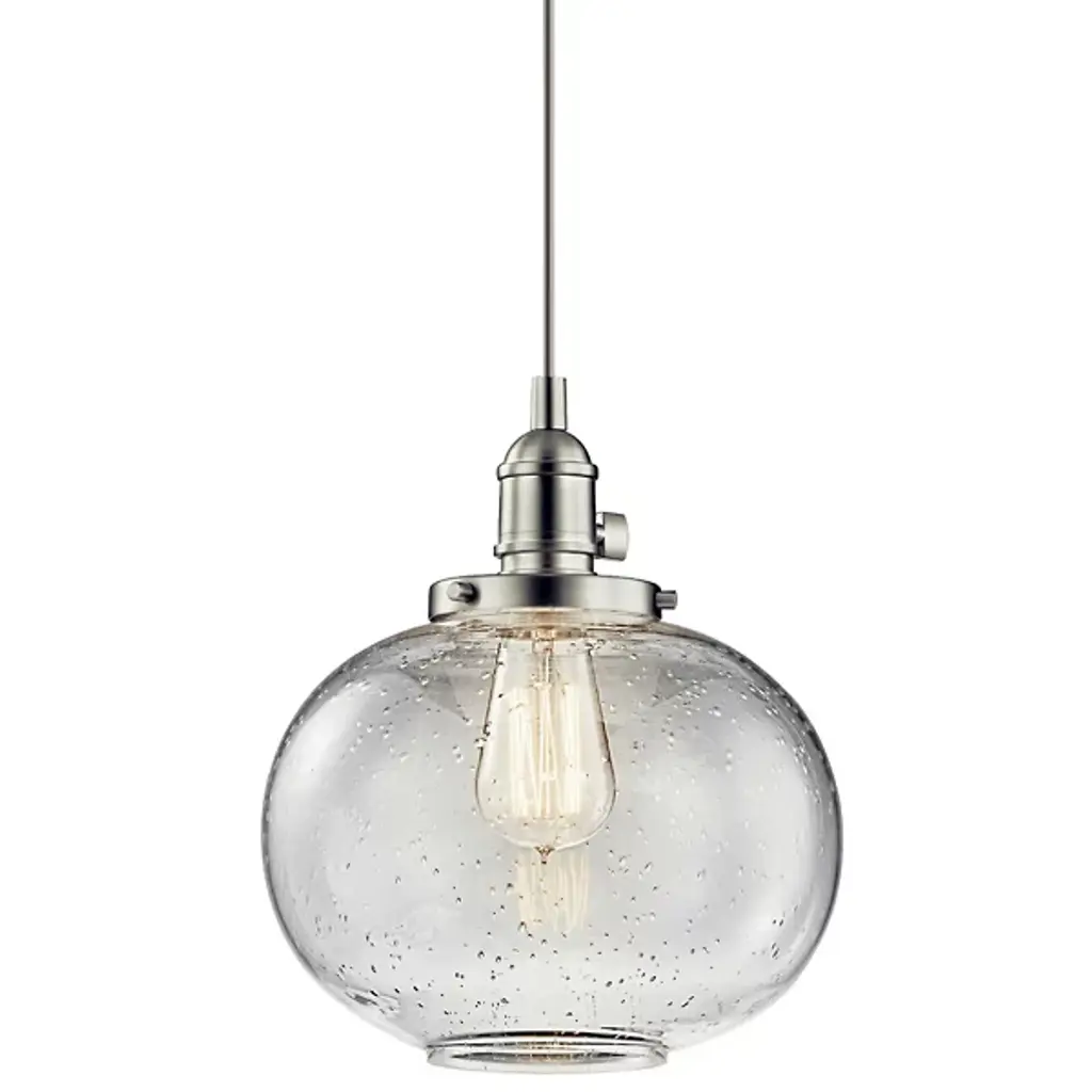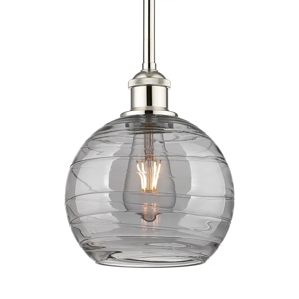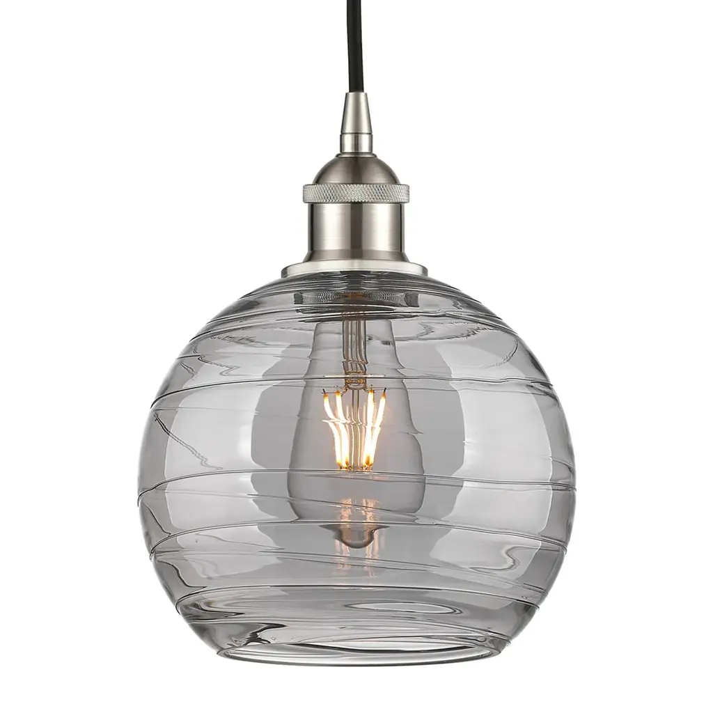 Simple elegance. The Terra Pendant by Hammerton Studio is a straightforward piece that features artisan-made glass. Expertly crafted in a studio in Salt Lake City, Utah, the one of a kind swirl texture creates a magical dance of light and color that is truly unique. Use as a single in place of a bedside table lamp or a few in a row above a kitchen island for an unexpected design element.