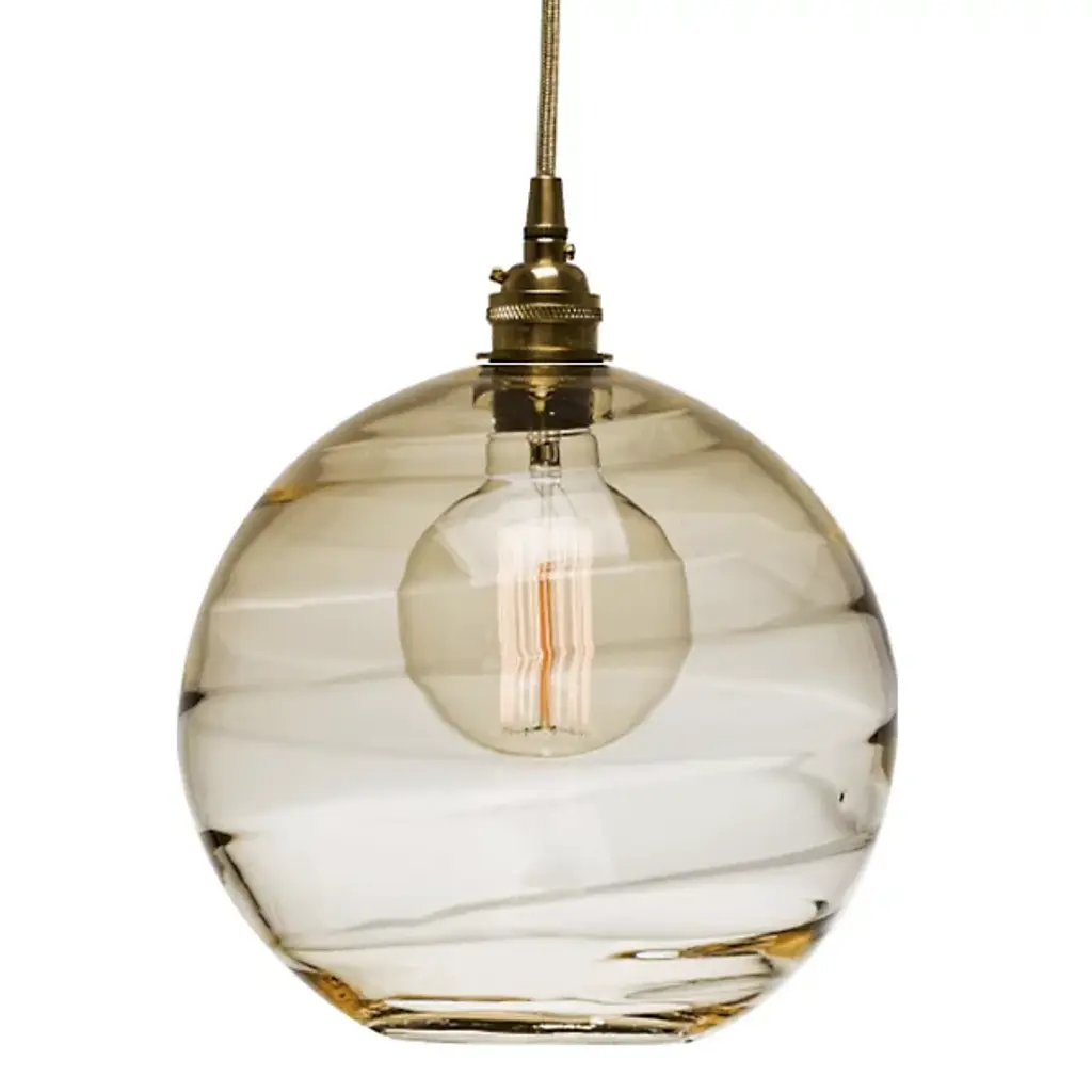 Simple elegance. The Terra Pendant by Hammerton Studio is a straightforward piece that features artisan-made glass. Expertly crafted in a studio in Salt Lake City, Utah, the one of a kind swirl texture creates a magical dance of light and color that is truly unique. Use as a single in place of a bedside table lamp or a few in a row above a kitchen island for an unexpected design element.