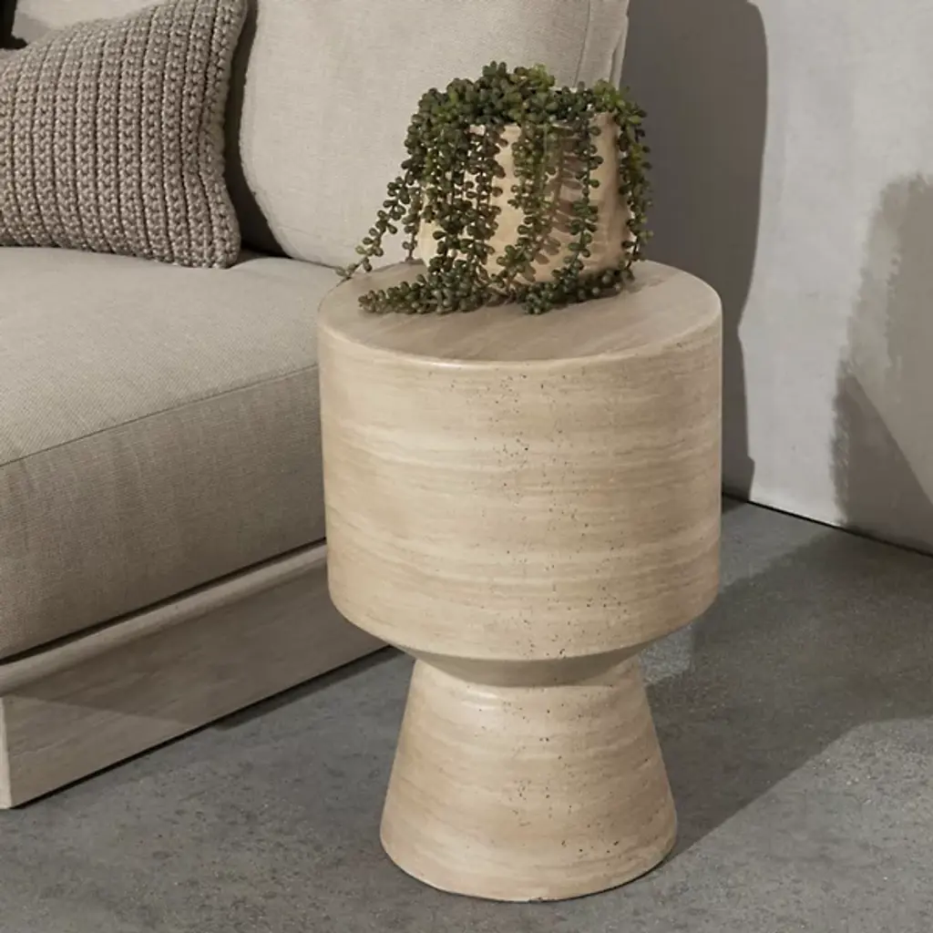 The Terrace Outdoor Accent Table from Classic Home features glass fiber-reinforced concrete, which resists weather, UV rays, and moisture, making it ideal for year-round outdoor use on patios or poolside areas. Despite its sturdy construction, the lightweight build allows for easy repositioning when entertaining needs change, and the water-based coating provides protection while maintaining the natural texture. The multifunctional design serves as both an accent table and a stool. At the same time, hand-finished details create subtle variations in each piece that enhance outdoor spaces where weather resistance and portable functionality are essential for successful entertaining.