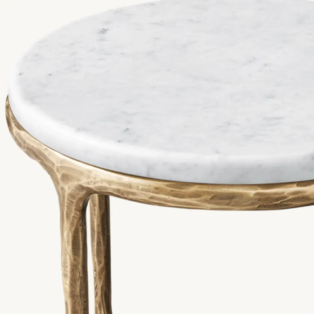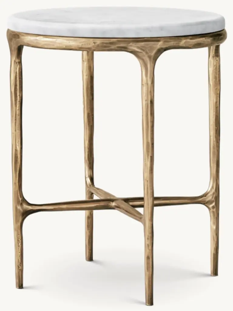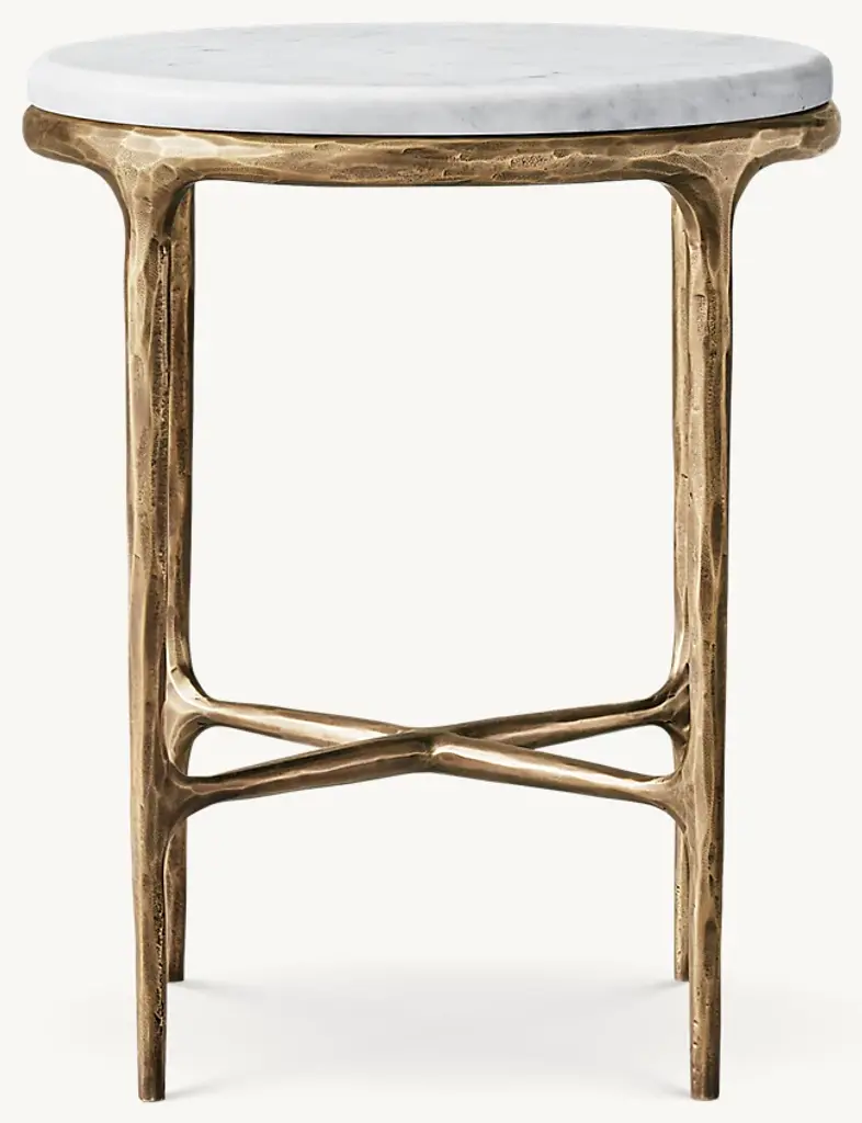 Inspired by the sculptural works of Salvador Dalí and Diego Giacometti, our collection by Julie Lawrence merges the rustic sensibility of hand-forged solid brass or solid stainless steel with cool marble. Employing an ancient fabrication process, artisans hand hammer the metal bars to reveal an alive, imperfect and organic texture. The pounded, tapered silhouettes are a rich counterpoint to the smooth, honed stone.SHOP THE ENTIRE COLLECTION