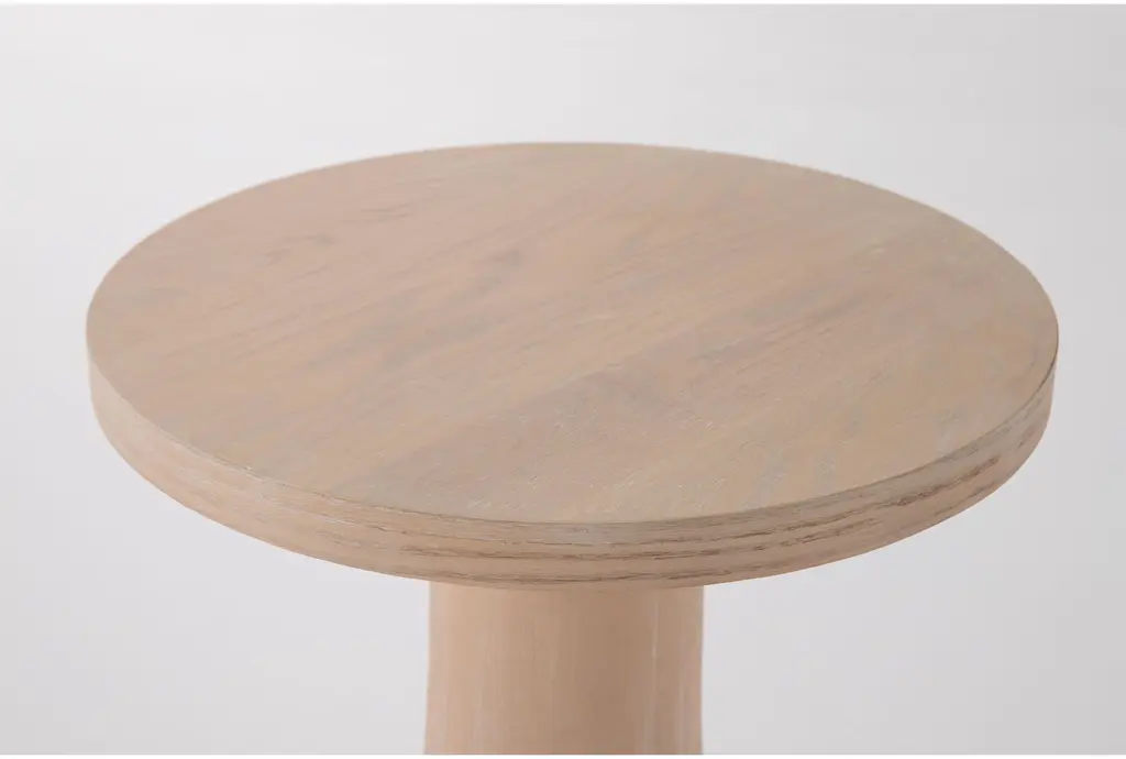 Smooth curves and sculptural shapes distinguish our Thalia round side table, which brings modern simplicity and beauty to your living room. Hardwood and oak veneer in a natural oak finish keep the look light and refreshing – perfect for today’s interiors. The alluring pedestal base acts as an artful foundation.