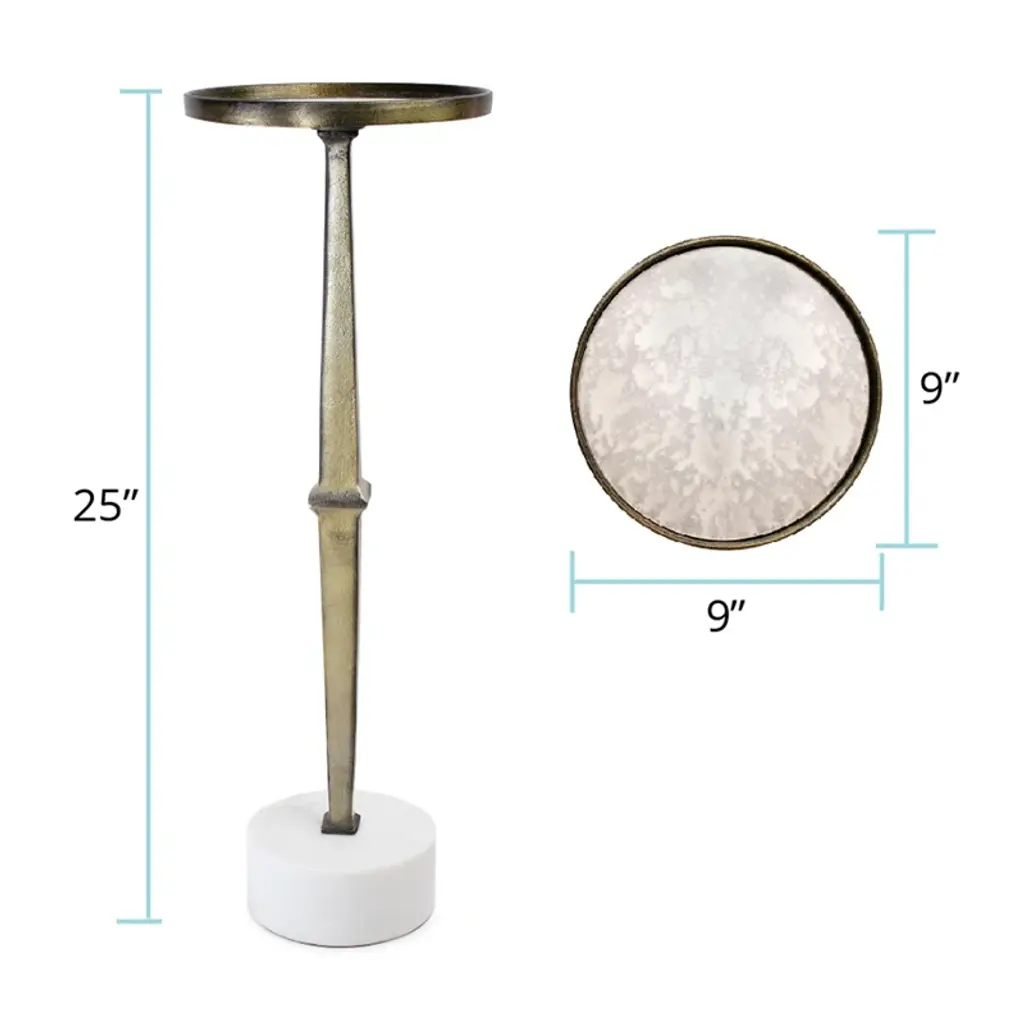 Our newest little drink table is packed with lots of elegant features such as an antique cast aluminium stand surrounded at the bottom with a beautifully rounded polished white marble base. The very top of the table is complete with a handsome antique mirrored surface. Small enough in size to tuck anywhere in the room and stylish enough to be in any decor, this table definitely lives up to its Italian name. Cheers everyone.