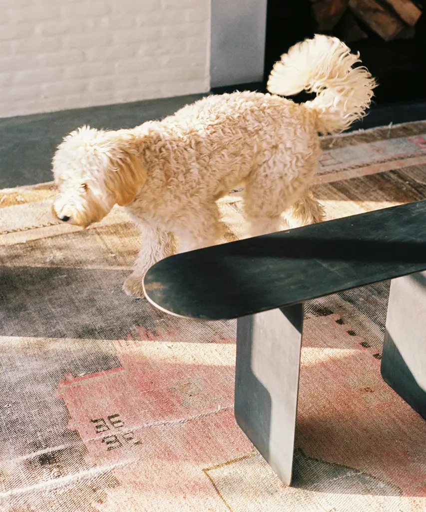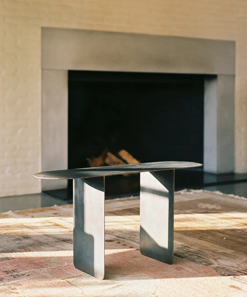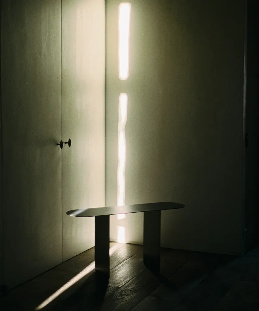 The Altar is inspired by prayer kneelers and small altars found in the Béguines’ rooms. Each metal piece is cut by hand and the welds are still visible. The smooth assemblage of thin metal pieces makes the object almost invisible, floating in space.