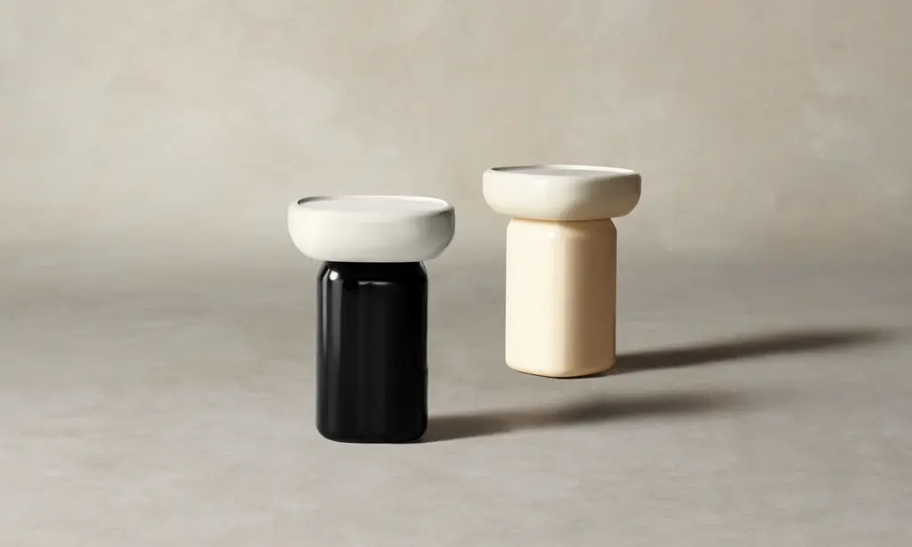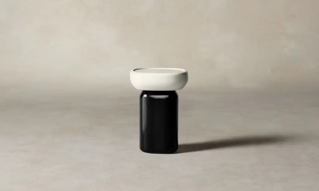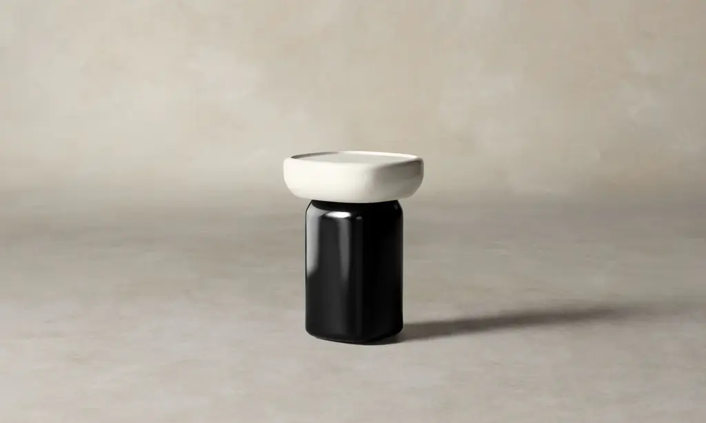 Crafted from high-gloss lacquer and glass, the Emile Side Table alludes to the opulence of Art Deco cinema. Its form resembles two masses stacked atop one another like a sculptural objet d'art.