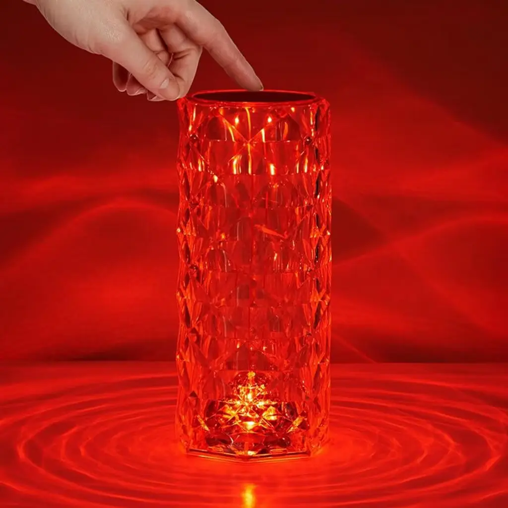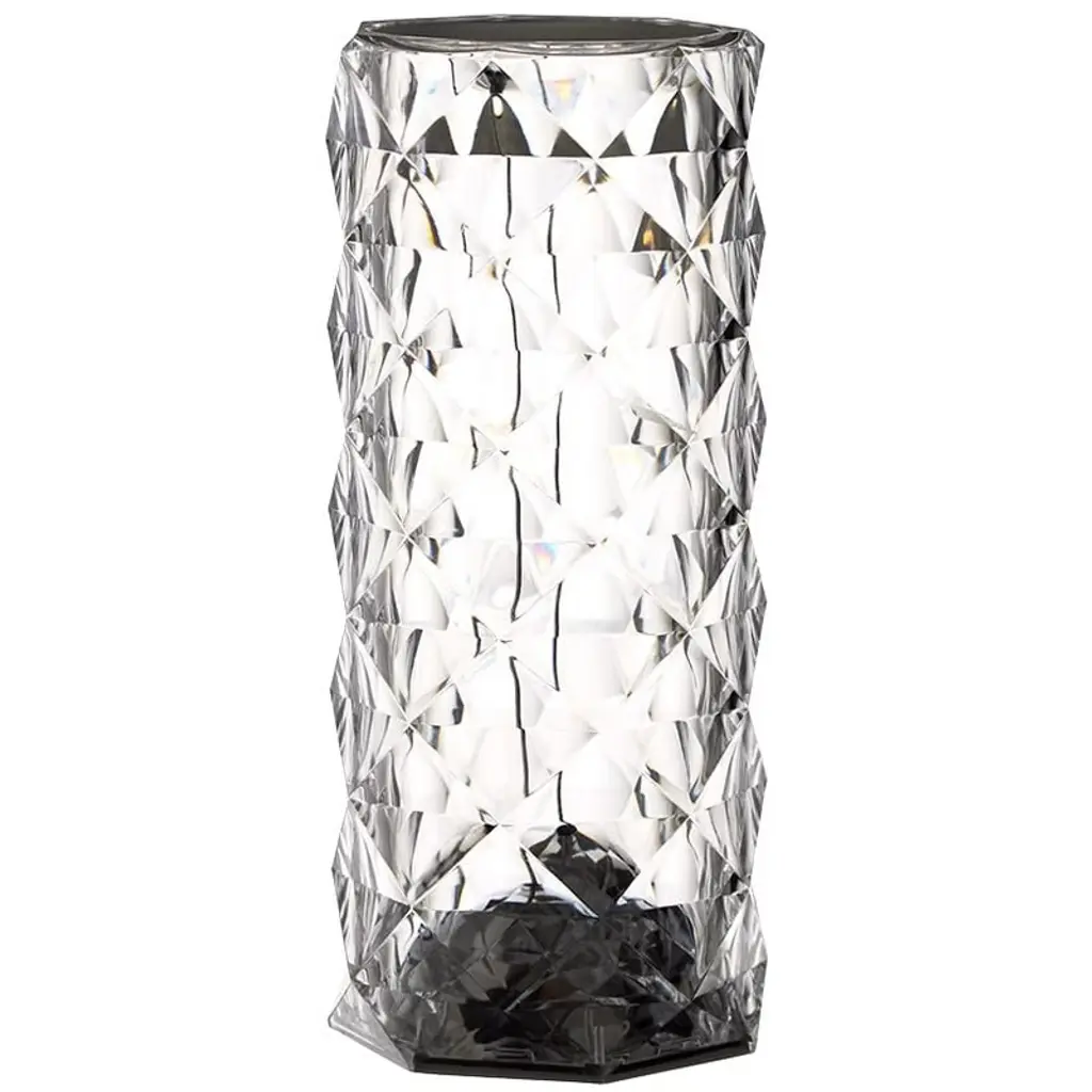 Crystal-look Magic Lamp brings sparkle and color to any event. Set the scene with this color-changing LEDs with several dynamic modes. Tap the top to cycle through a rainbow of 16 colors and pick from a steady glow and a light that fades in and out. The entire surface lights up, and the unique diamond design really brings the colors to life. Use it as a bedside lamp, a nightlight, a party decoration or to set the mood in any room. Made from: Polystyrene, plastic and stainless steel Measurements: 4" dia. x 8-1/4"H Notes: Includes a USB charger