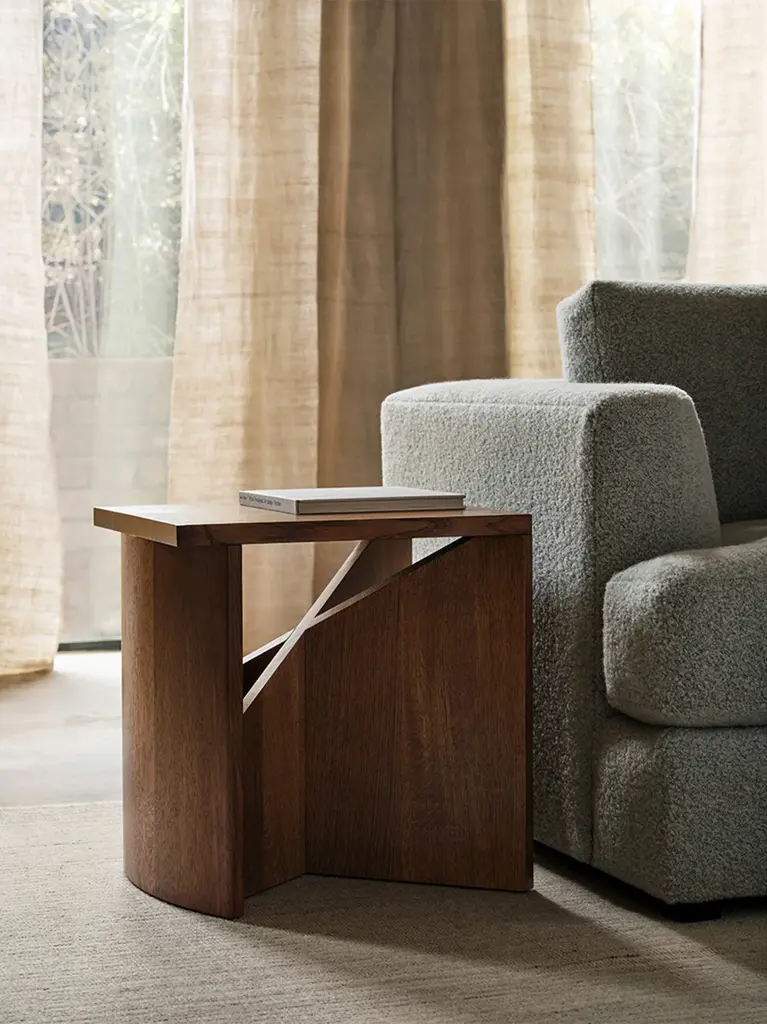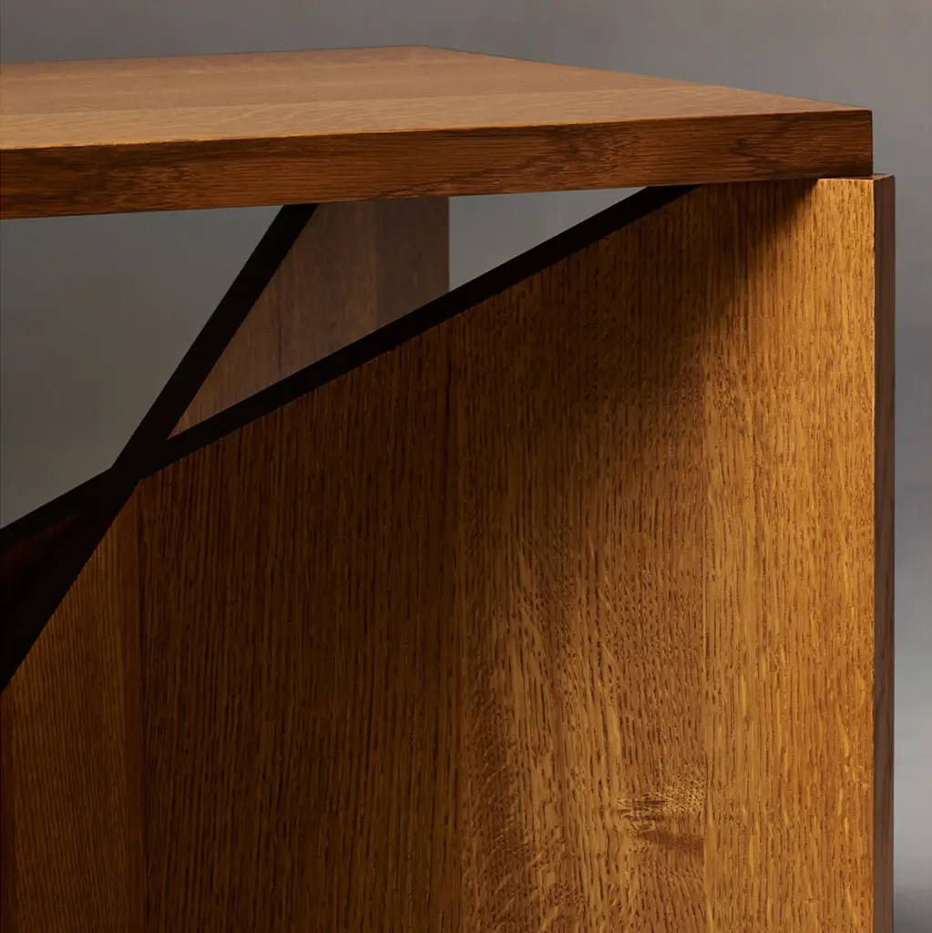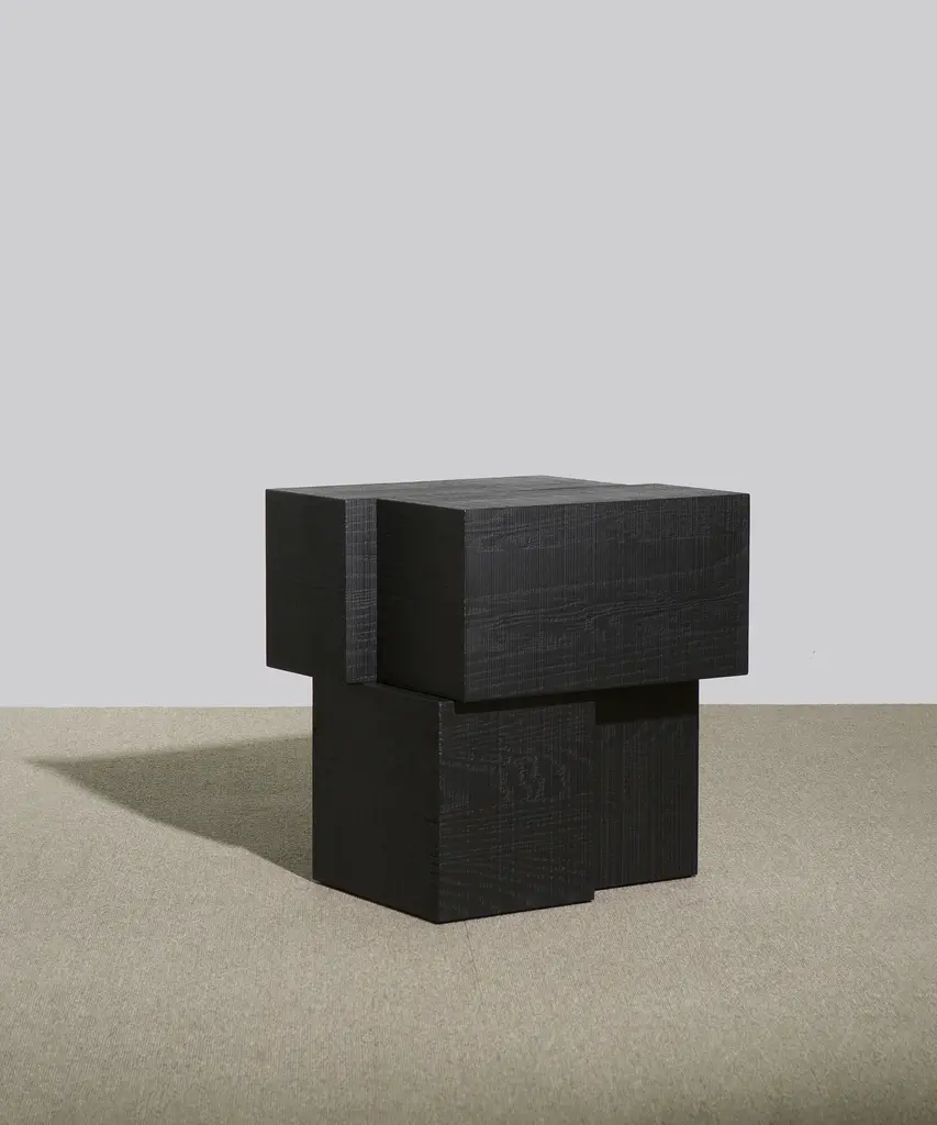 The Wright Side Table is an artful intersection of positive and negative space. Made from planes of white oak or walnut, it bears a void at the base that invites slivers of light to come through. Handcrafted at a family-owned workroom in upstate New York.