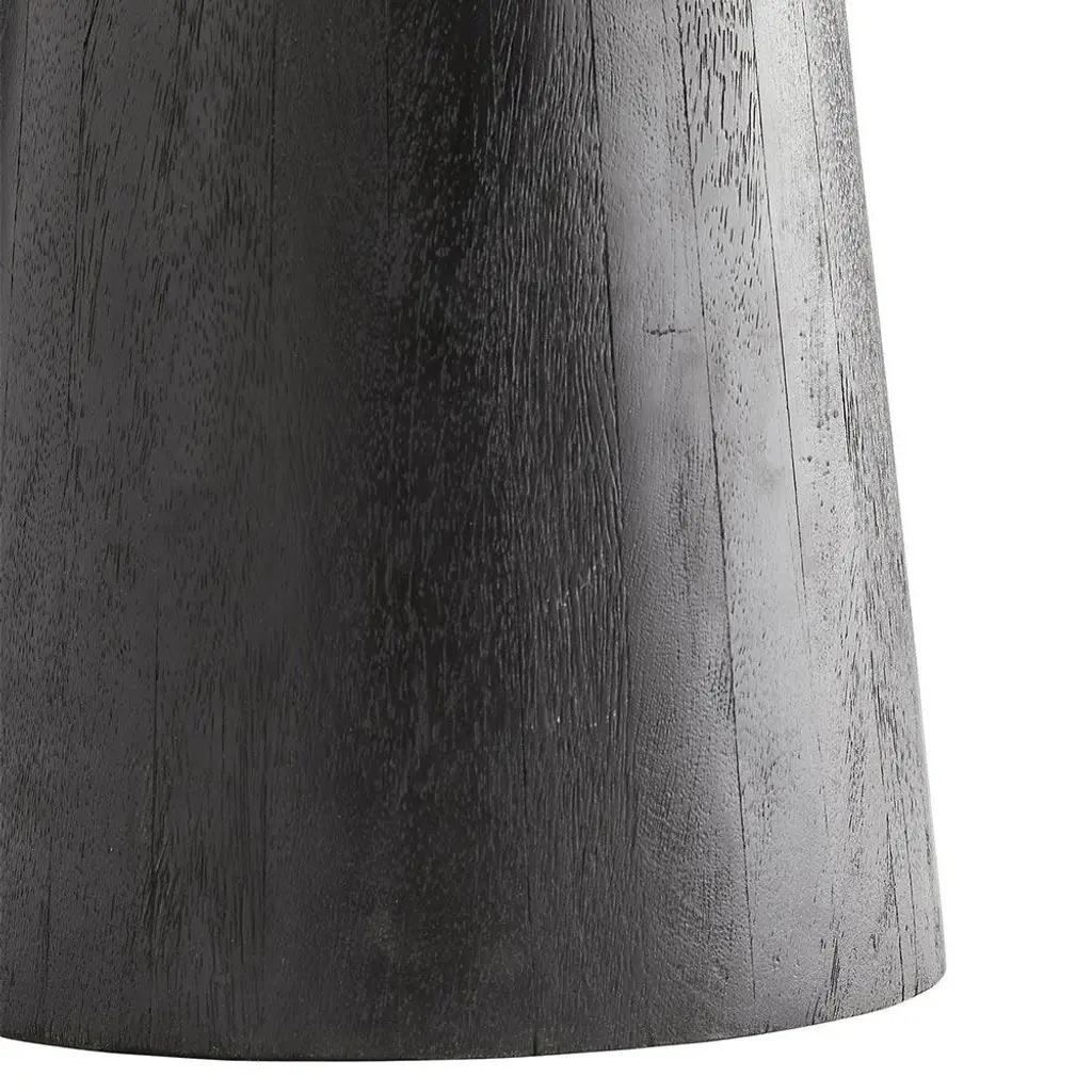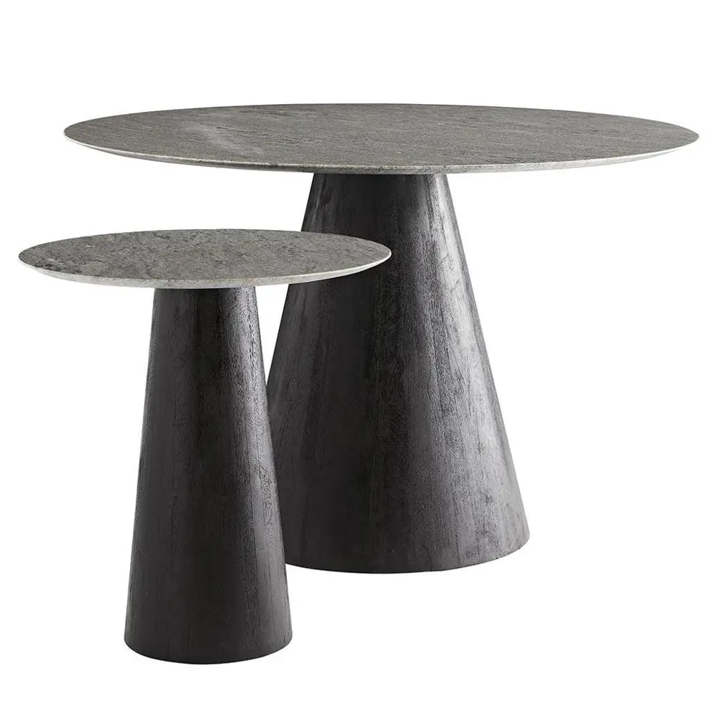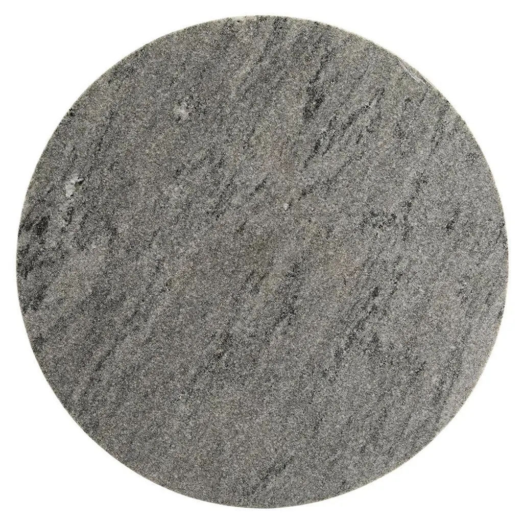 Theodore Industrial Grey Marble Top Black Wood Round End Table