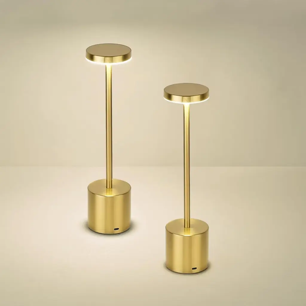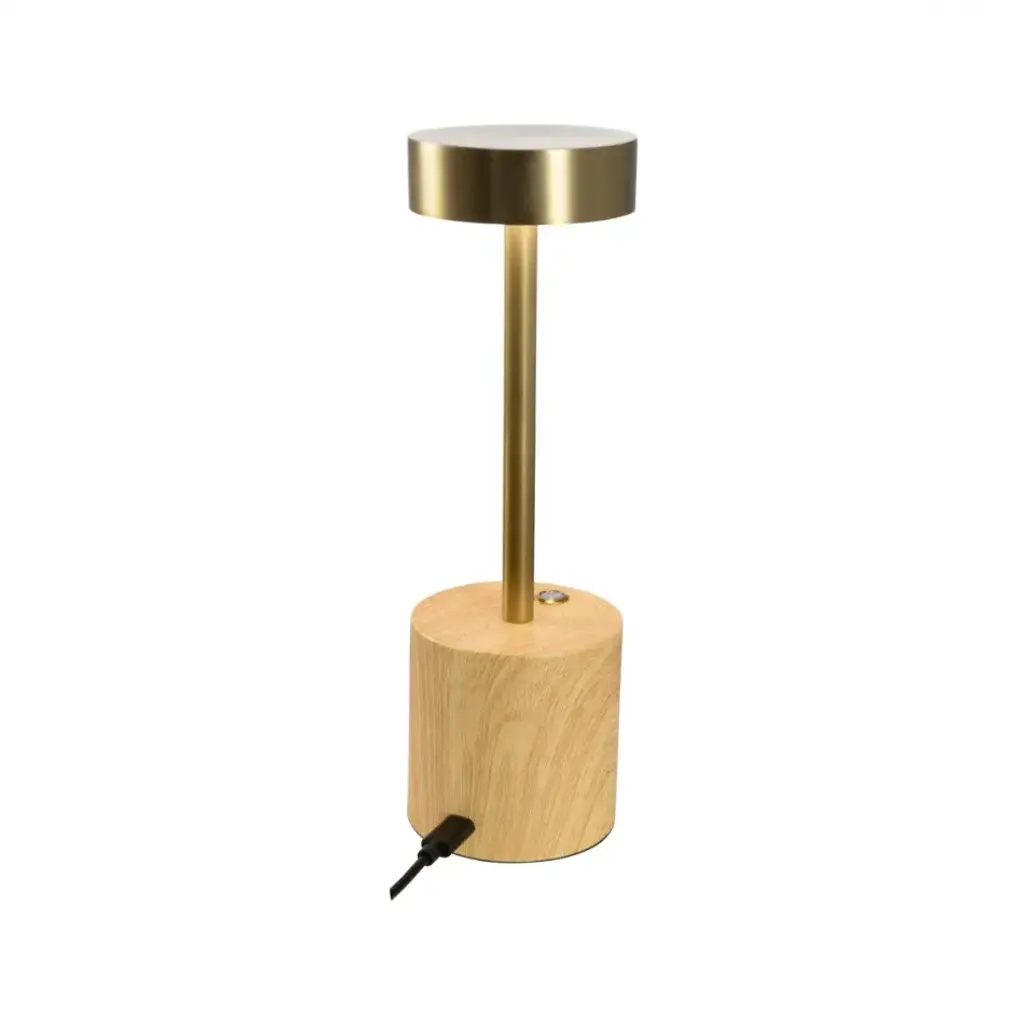 The Theodore Lamp is the perfect blend of modern convenience and minimalist design. Rechargeable and portable, this sleek lamp offers flexibility and ease, allowing you to take it wherever light is needed. Powered by LED technology, the Theodore Lamp provides energy-efficient, long-lasting illumination with a warm glow. The smooth brushed brass finished top and slender stem rest on a base covered in a wood decal, creating a stylish contrast of materials. Ideal for accent lighting, whether on a desk, bedside table, or outdoor setting, the Theodore Lamp brings both elegance and practicality to any environment.