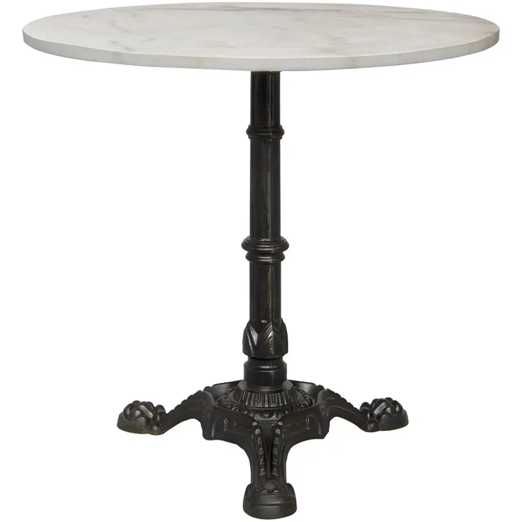 A traditional metal base supports a simple circle of natural stone in the Theresia side tables from Noir. Artisan crafted with marble these accent pieces were designed with simple lines to allow the natural material center stage.