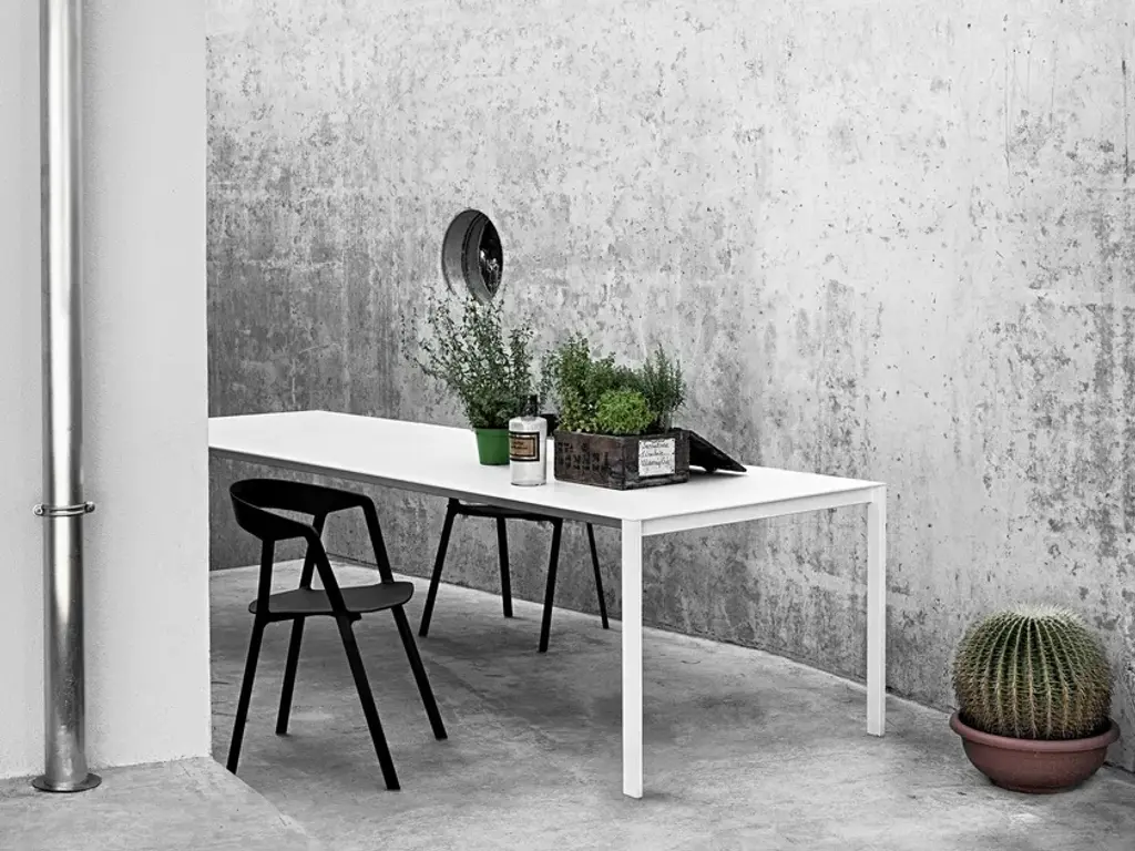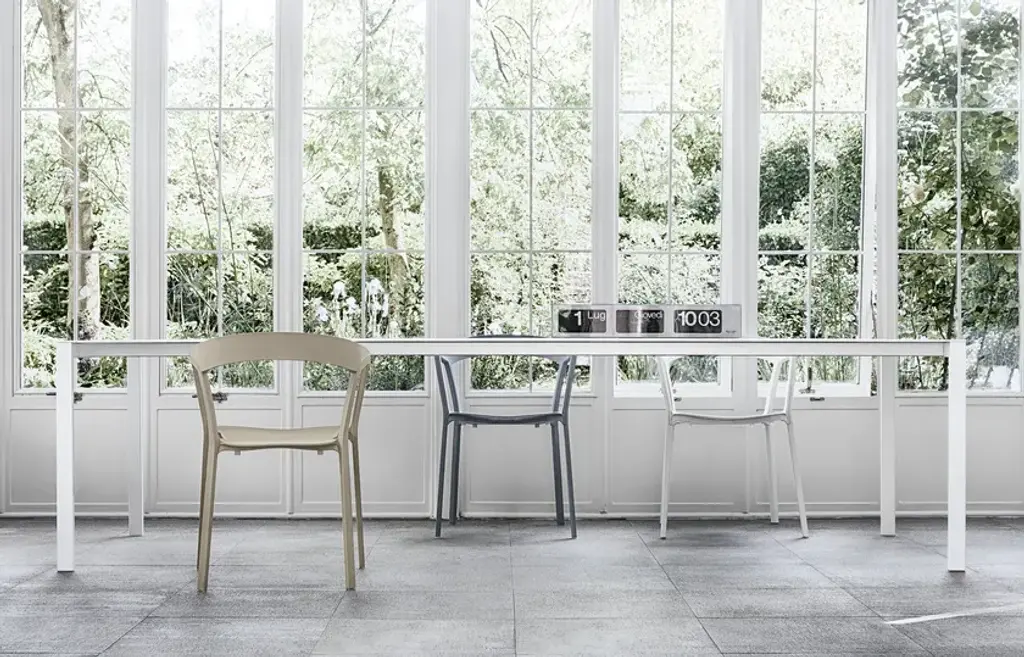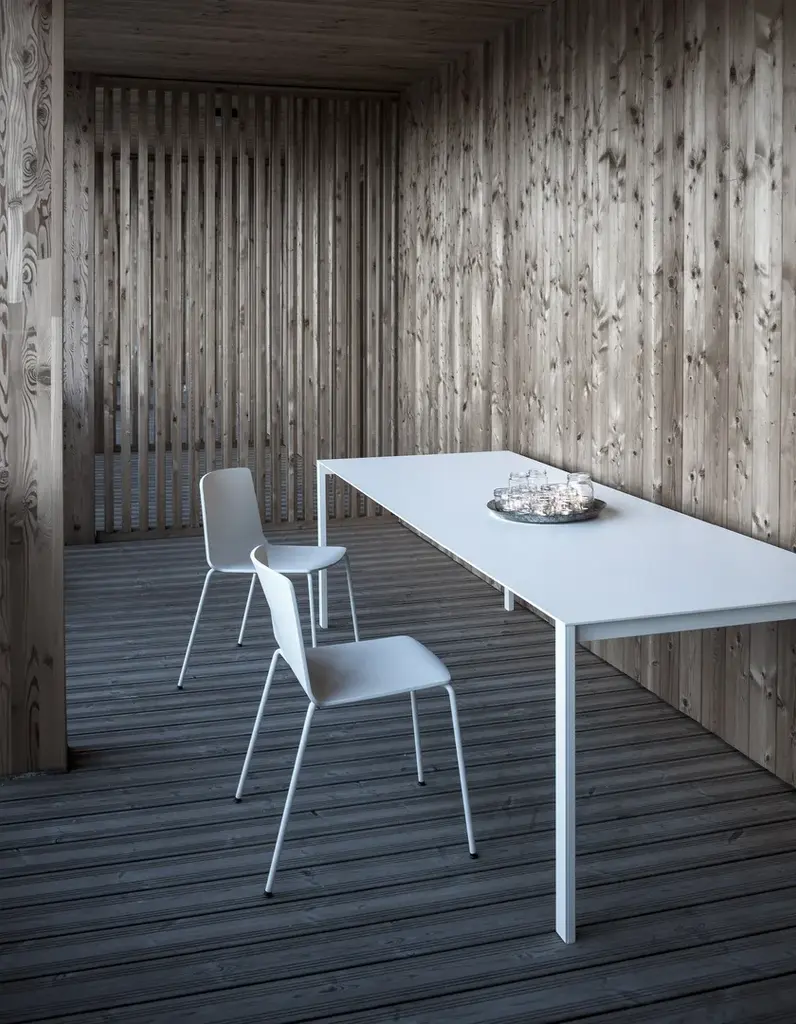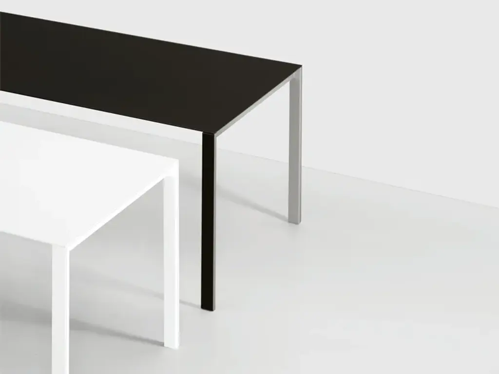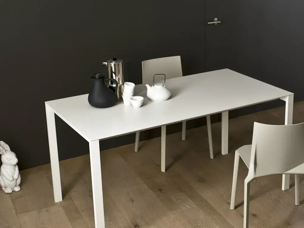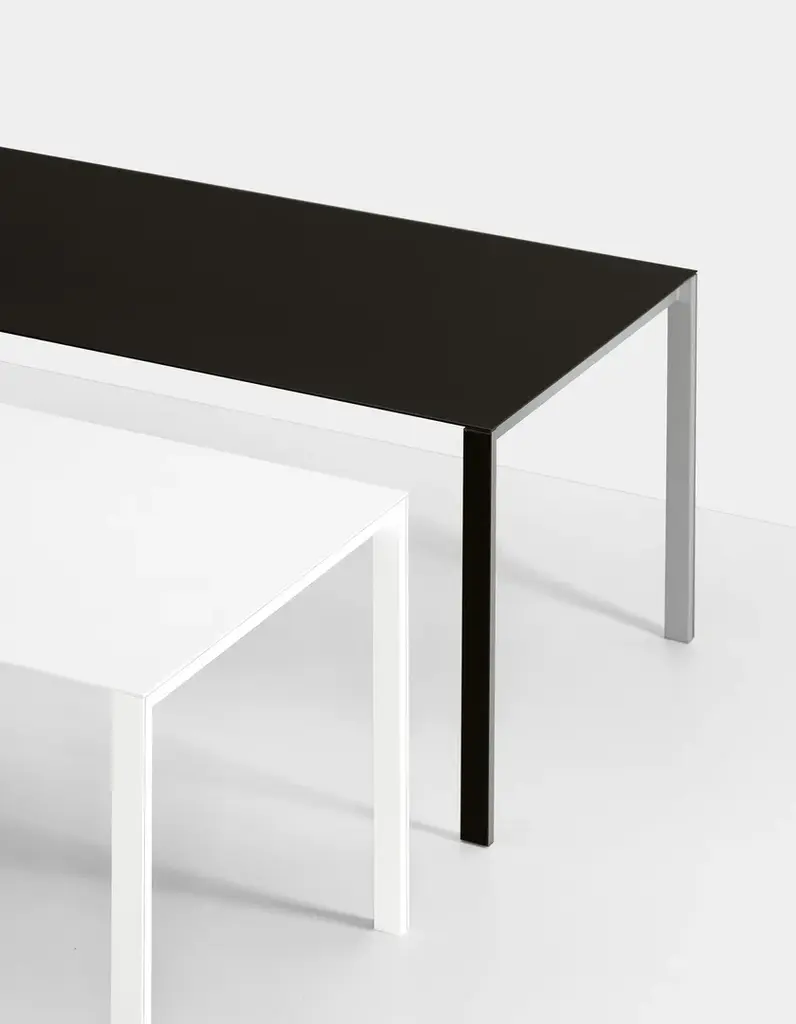 Thin-K can be considered more of a technological and formal challenge than a table. At the limits of sheer minimalism, the top of Thin-K is just 6mm thick and can extend to considerable lengths without losing its linearity and sturdiness. It is narrow enough to appear suspended in the air. Designed by Luciano Bertoncini, Thin-K is made entirely of metal, with external leg details and a top in aluminium, gloss or matt glass, and wood veneered aluminium – resistant, durable and completely recyclable materials. The textured finish of the aluminium top makes it smooth and pleasant to the touch. Fixed or extendable, the Thin-K table is available in various colours.