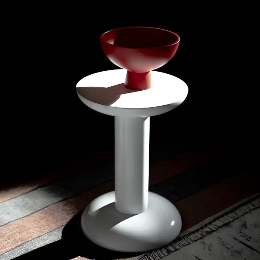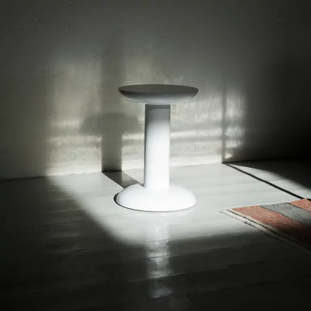 The Thing Side Table from Raawii is a smooth contemporary design optimizing Raawii’s eye for proportion and design, as well as respect for people and society. Designed by George Sowden and made from recycled aluminum, it features a rounded base and top separated by a central cylinder, with a flat-cut surface offering space for small accessories or seating as a stool. The design is engineered for flat-packed shipping and arrives with all the hardware and tools needed to assemble it, minimizing environmental impact while creating a sense of ownership when it is constructed.
