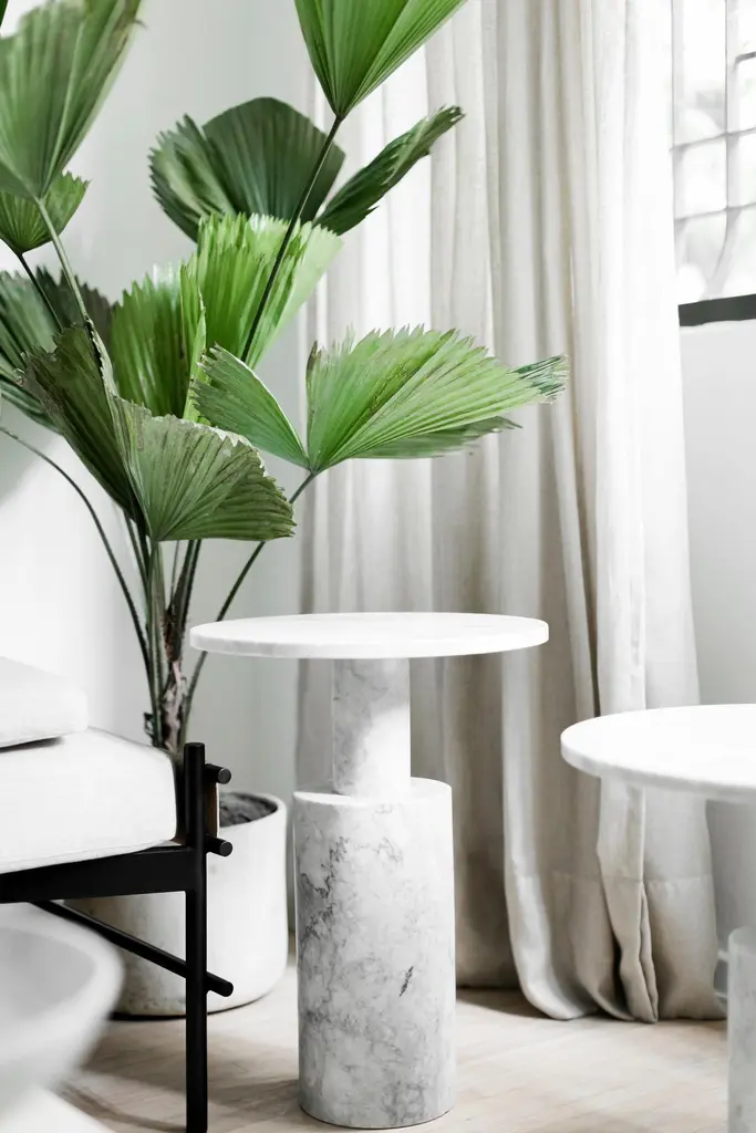Side table in carved Veneciano white marble. Available on request in Monterrey black marble. For this piece of marble, the cover will arrive disassembled, to install it a screwdriver is essential. Within the delivery, a manual is included to follow the instructions. Production time: 6-8 weeks for items without marble / 13-14 weeks for marble pieces. Shipping +10 additional business days. Casa Quieta uses natural materials such as woods, stones, fabrics etc. These materials may vary in tone, veining, and cavities due to their natural origin. This is part of the inherent beauty of materials and is not considered a flaw. Due to the artisan nature of our production process, there is a +/- 3mm measurement tolerance.