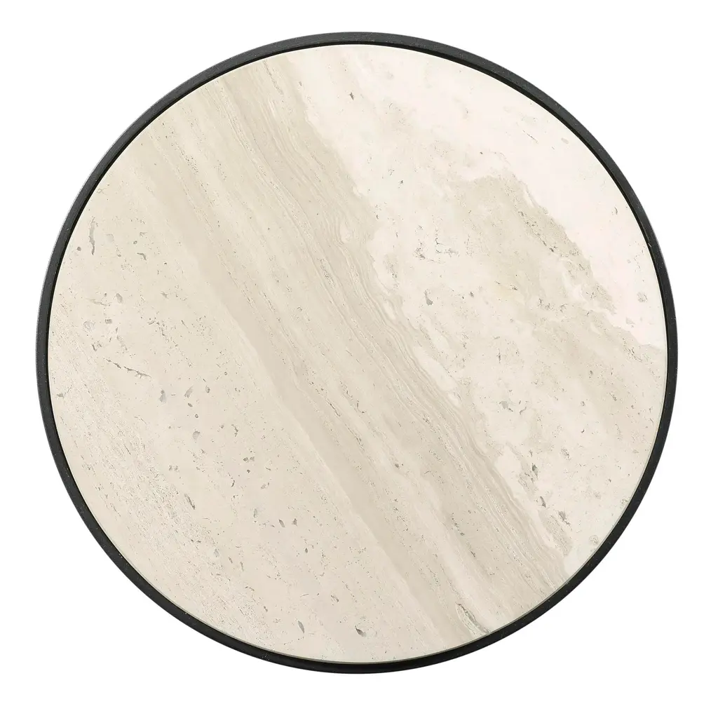 This piece is available only as shown, and will ship in 2-3 weeks. This striking piece cuts an impressive form! Rustic black finish steel base with a limestone top. At over 125 pieces, this collection designed by Thomas O'Brien for Century Furniture includes many types of furniture, from upholstery to handcrafted wood and metalwork, for every room of the home, and in time, the garden. In style it is hopefully just as ambitious and interesting. There are purely handsome French and Scandinavian modern inspirations, but also the world of historical English forms, and the glamour of the American skyscraper age in between. All these influences are refined and recombined through the ways that I think about vintage and modern living. Some of them are dressy. Some are casual. Everything has an essential American elegance that makes the design lasting.