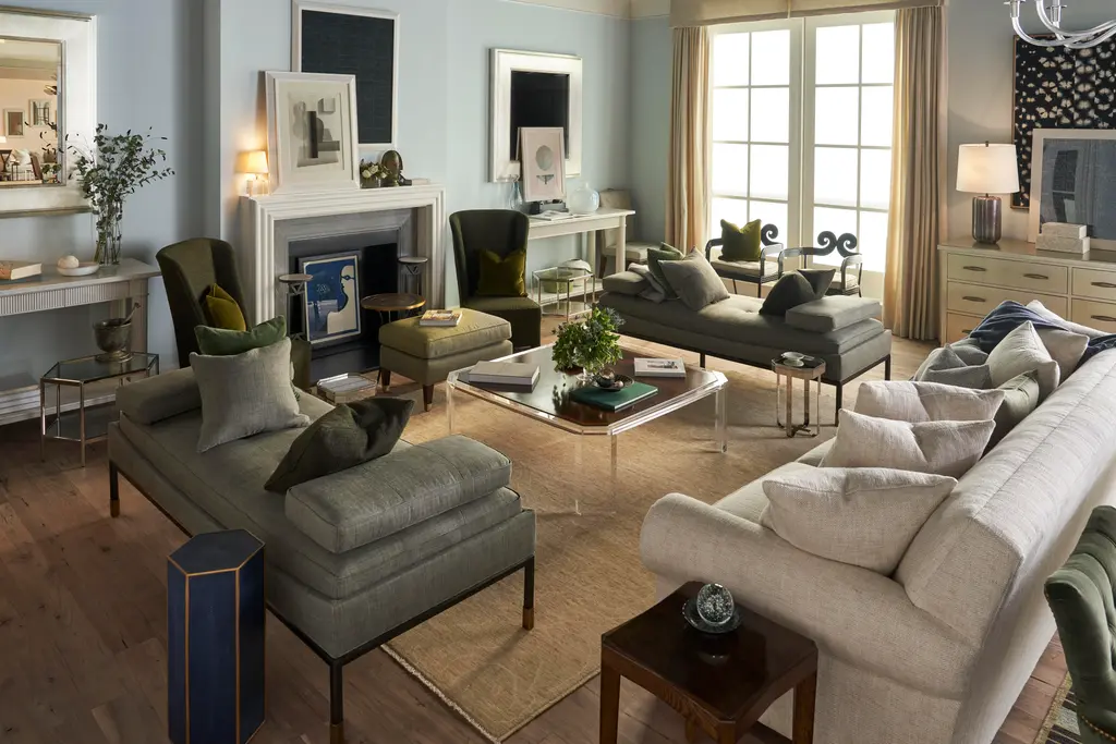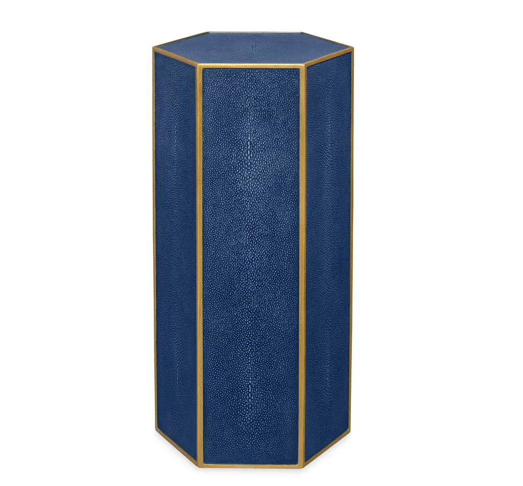Finished in an indigo shagreen with gold leaf accent trim Materials: Mahogany Solids, Faux Shagreen At over 125 pieces, this collection includes many types of furniture, from upholstery to handcrafted wood and metalwork, for every room of the home, and in time, the garden. In style it is hopefully just as ambitious and interesting. There are purely handsome French and Scandinavian modern inspirations, but also the world of historical English forms, and the glamour of the American skyscraper age in between. All these influences are refined and recombined through the ways that I think about vintage and modern living. Some of them are dressy. Some are casual. Everything has an essential American elegance that makes the design lasting.