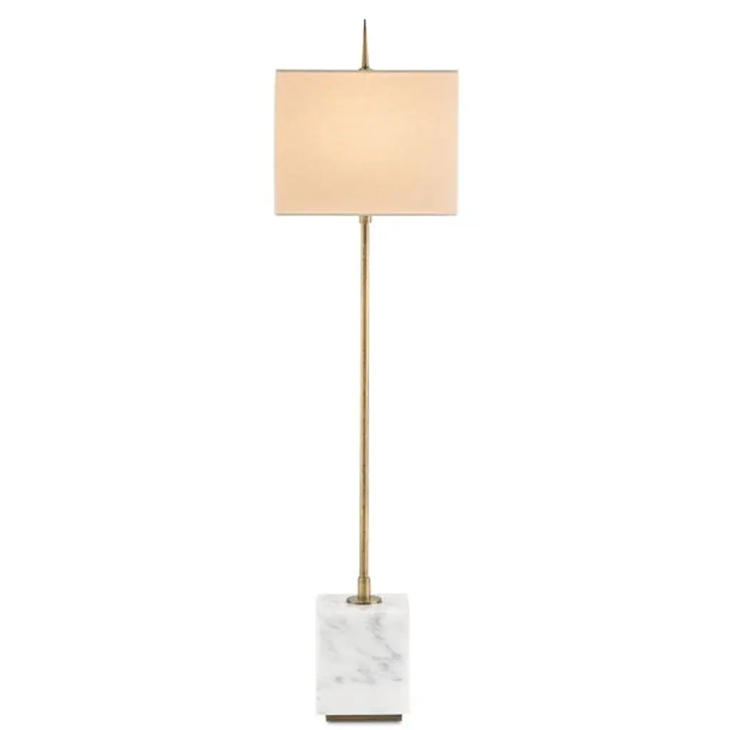 Exemplifying an essence of style from the 1960s, this console lamp features a gold body + square marble base. Its' vanilla linen shade + gold finial complete a sophisticated contemporary look. Gorgeous on its' own or as a pair on a console table or sideboard.