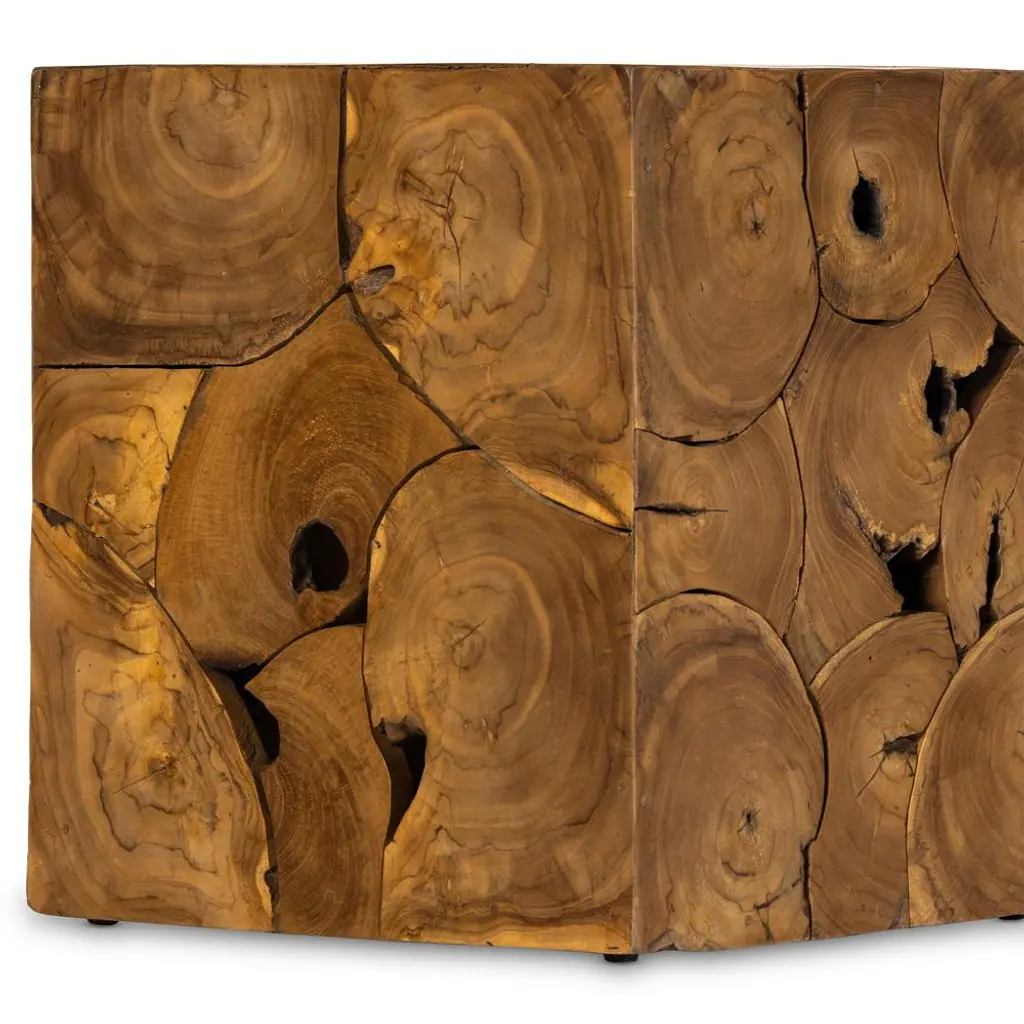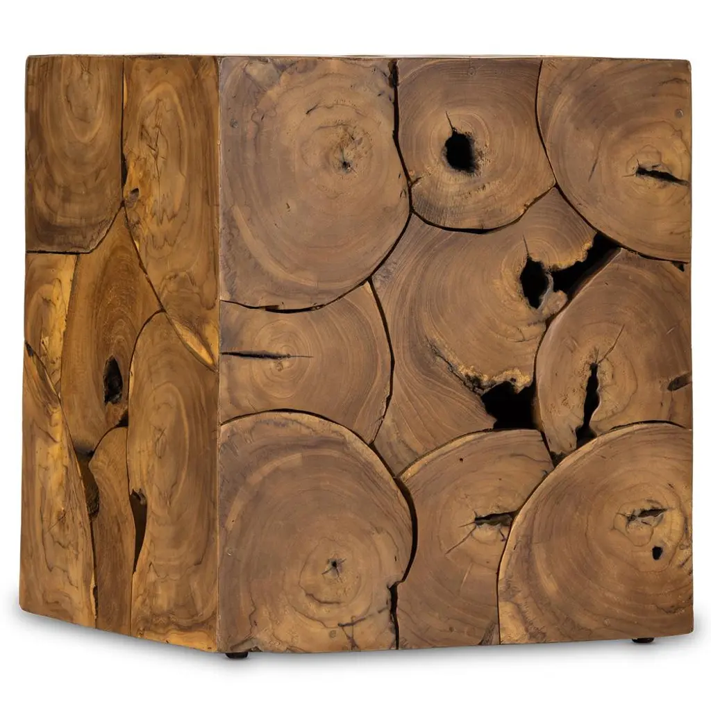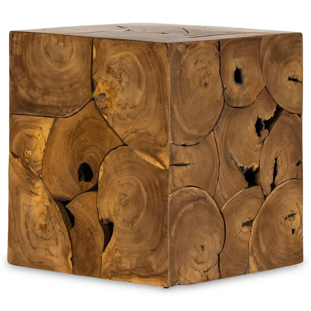 Thorn Mid Century Modern Natural Teak Square Block Outdoor End Table