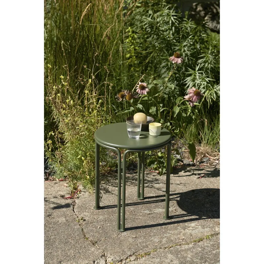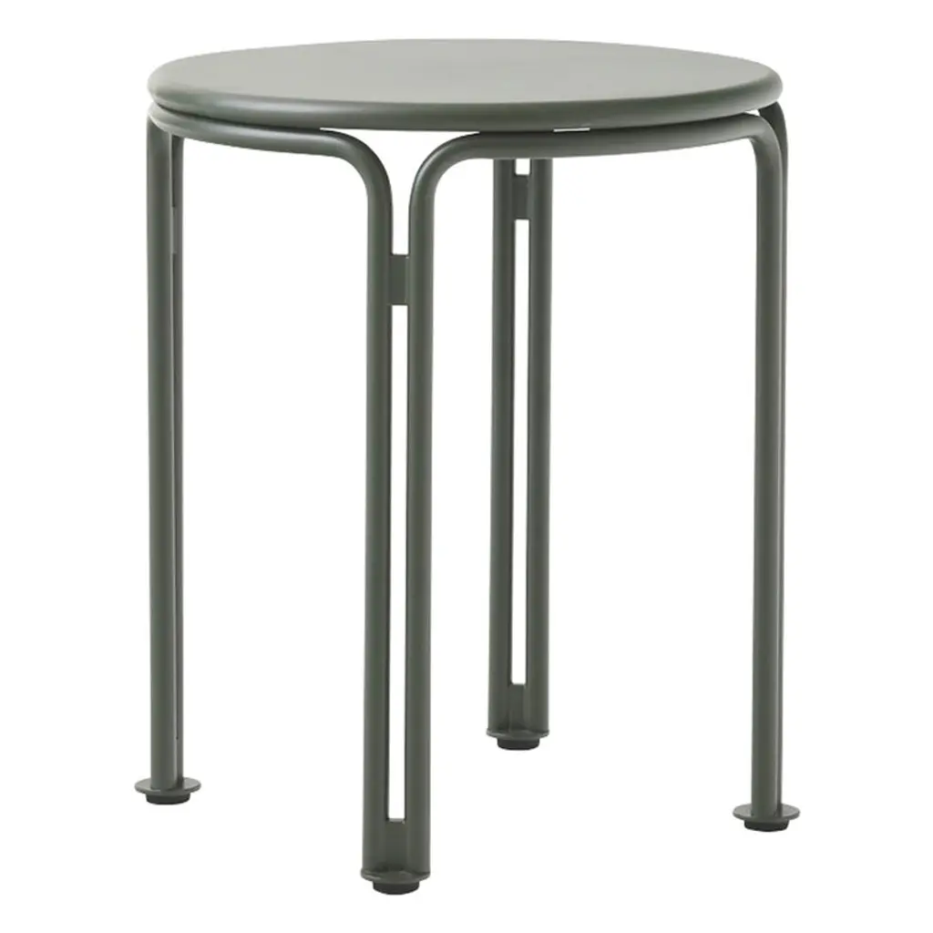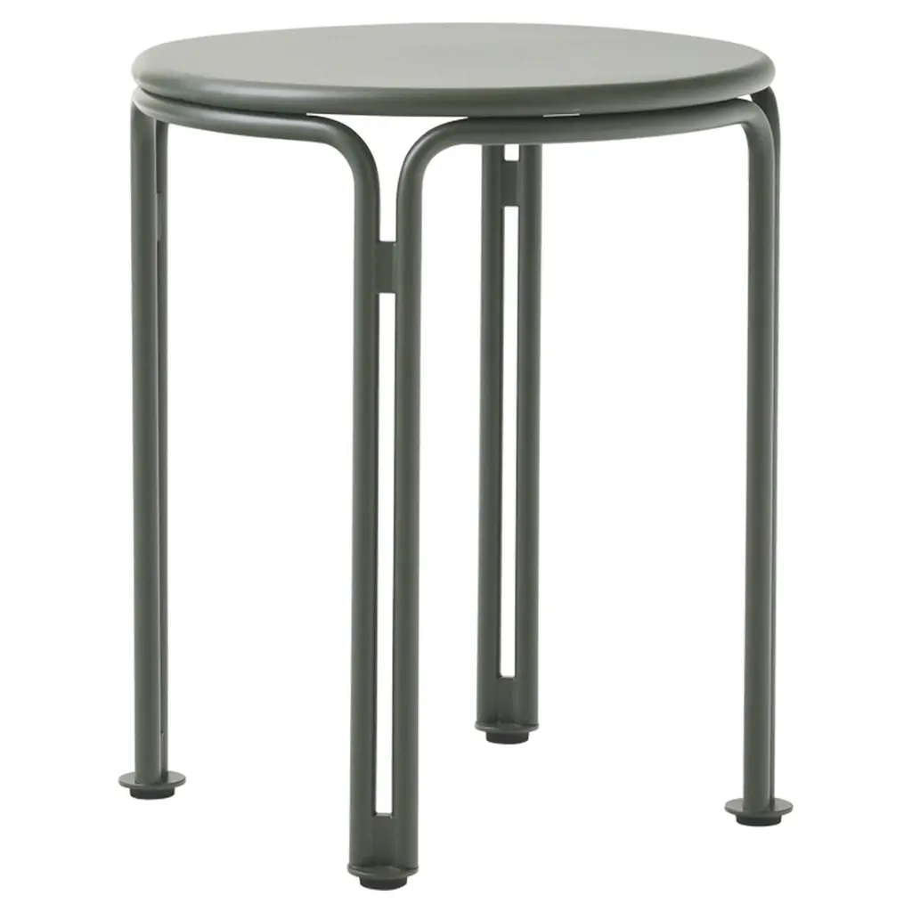 &Tradition's Thorvald SC102 is an outdoor side table featuring a steel frame and round tabletop that provides a compact setting for open-air lounging and coffee breaks. Designed to double as stools, Thorvald SC102 patio tables blend seamlessly with lounge chairs from the same collection and also pair beautifully with other styles of outdoor furniture, making them a versatile addition to any al fresco lounging area. Designed by Space Copenhagen, the Thorvald collection offers a diverse suite of metal patio furniture, echoing the vibrant essence of Copenhagen and playing with sunlight to cast intriguing shadows on the ground. Inspired by the poetic lines of Denmark's renowned neoclassical sculptor, Bertel Thorvaldsen, and the intricate motifs in his namesake museum, the Thorvald series is designed to animate any outdoor space, from chic urban terraces and snug balconies to spacious summer retreats, in both private and public settings.