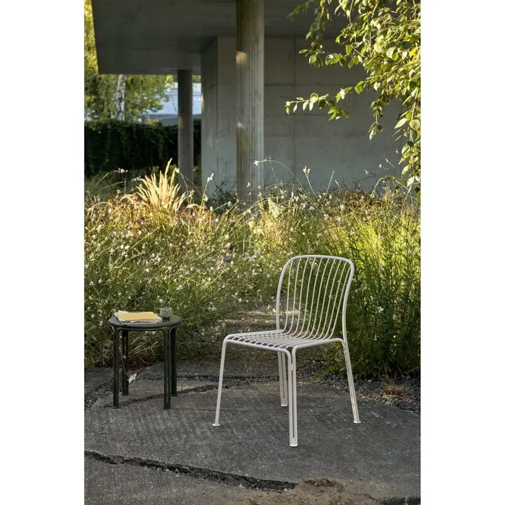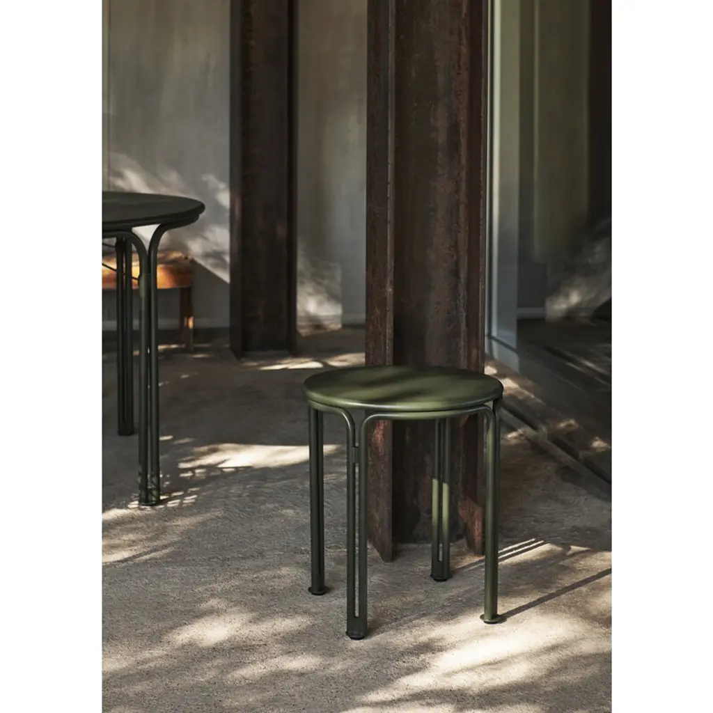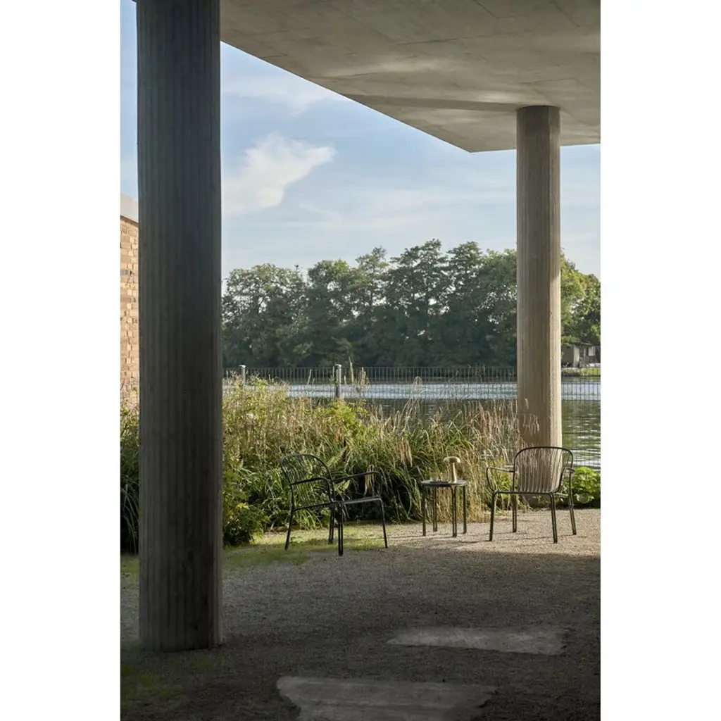 &Tradition's Thorvald SC102 is an outdoor side table featuring a steel frame and round tabletop that provides a compact setting for open-air lounging and coffee breaks. Designed to double as stools, Thorvald SC102 patio tables blend seamlessly with lounge chairs from the same collection and also pair beautifully with other styles of outdoor furniture, making them a versatile addition to any al fresco lounging area. Designed by Space Copenhagen, the Thorvald collection offers a diverse suite of metal patio furniture, echoing the vibrant essence of Copenhagen and playing with sunlight to cast intriguing shadows on the ground. Inspired by the poetic lines of Denmark's renowned neoclassical sculptor, Bertel Thorvaldsen, and the intricate motifs in his namesake museum, the Thorvald series is designed to animate any outdoor space, from chic urban terraces and snug balconies to spacious summer retreats, in both private and public settings.