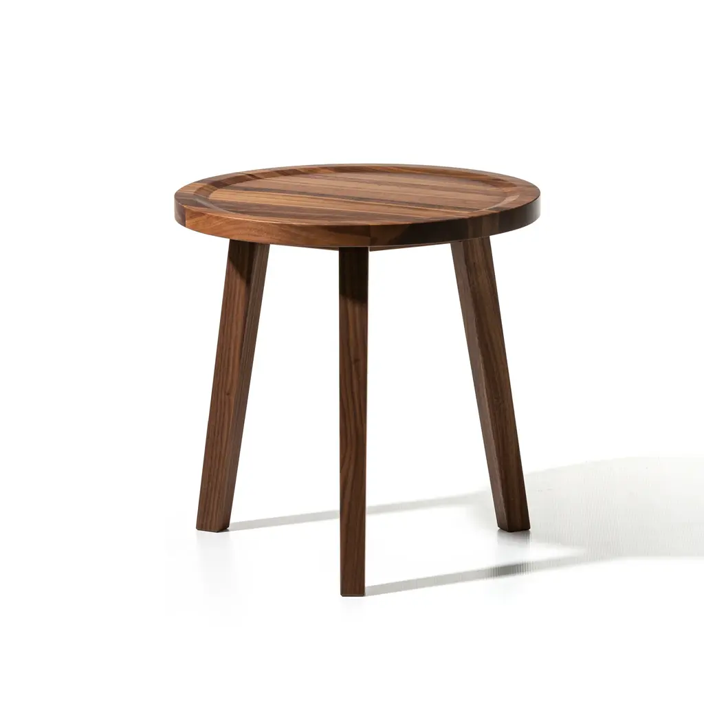 Elevate your living space with the Gervasoni Gray Three-legged Round Side Table, a stylish coffee table designed to enhance any room. Featuring a round top and clean, essential geometries, it combines simplicity with elegance. Available in different heights and finishes, including premium materials like Canaletto walnut and lacquered oak. The slightly raised top mimics a tray, adding a subtle yet sophisticated detail that enhances both form and function.