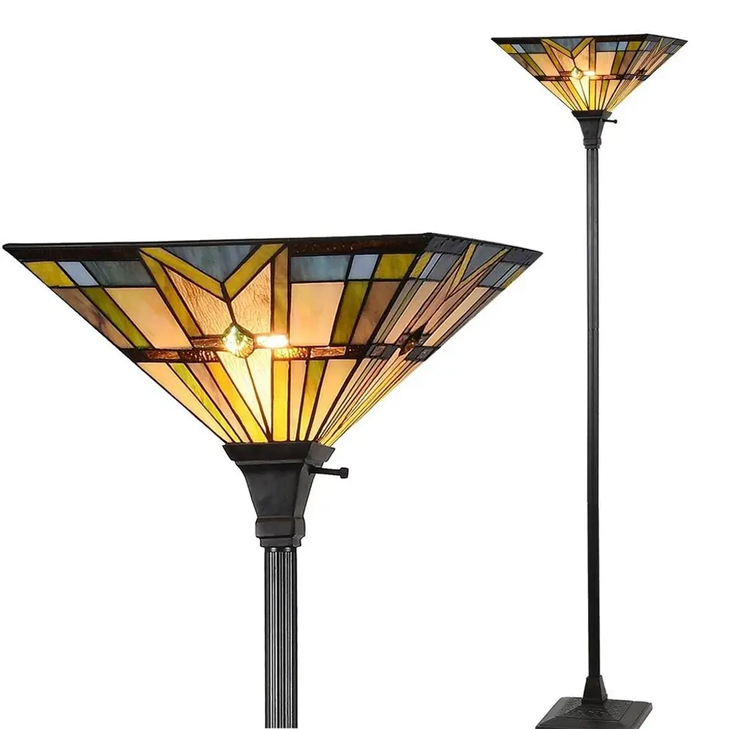 Tiffany Torchiere Floor Lamps Vintage Antique Stained Glass Standing - 12" X 69" - Black - 12" X 69"