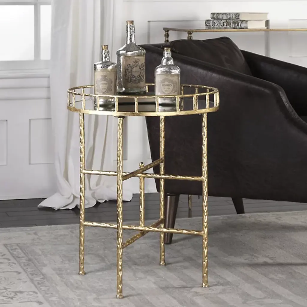 With a mirrored tray-styled top on a crossbar base, the Tilly Accent Table from Uttermost adds a touch of refinement to your living space. Its durable iron and MDF framework ensures durability and style. The framework creates lovely silhouettes, showcasing a mid-century modern look that complements various decor styles. Elevate your living space with this exquisite accent table, optimized for displaying your favorite decor pieces or serving refreshments with flair.