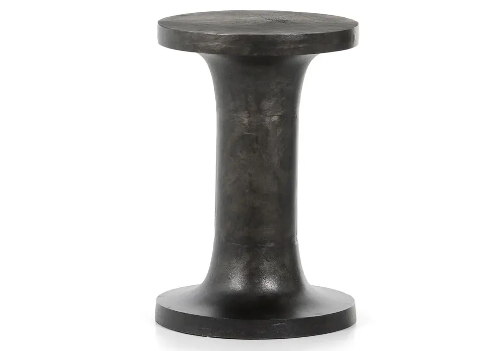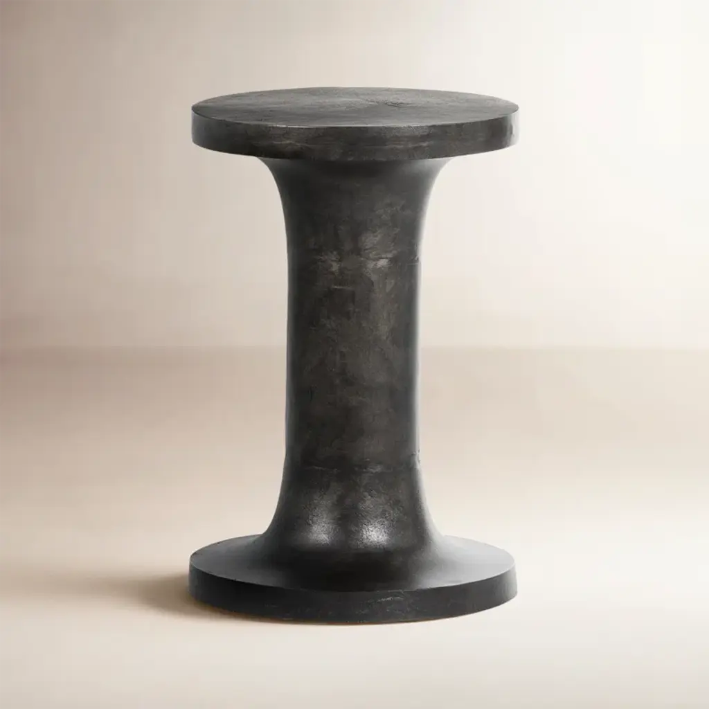 Made from raw black cast aluminum, a dramatically tapered end table flaunts beautiful high/ low hues and subtle brutalist vibes.