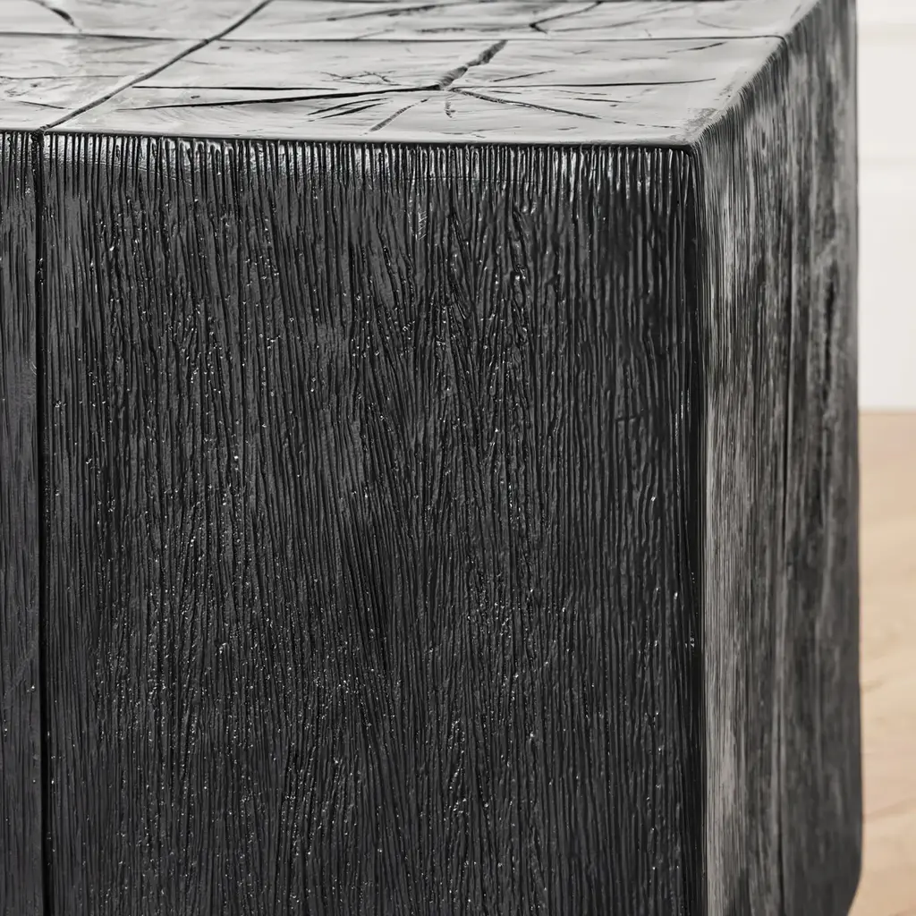 Our Timber End Table is constructed of resin which is cast from reclaimed old oak beams from the Baguio region of the Philippines. Originally used as railroad tracks on a route passing through Manila. Molded out of resin in a multi-step process, our Timber End Table is finished with real polished stone fragments and artisan grade resin resulting in a durable refined coating. As a result this makes it ideal for indoor or outdoor use. Exclusive to Z Gallerie.