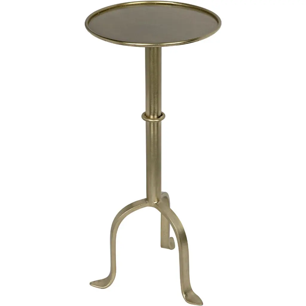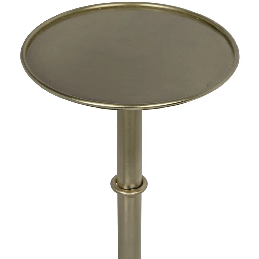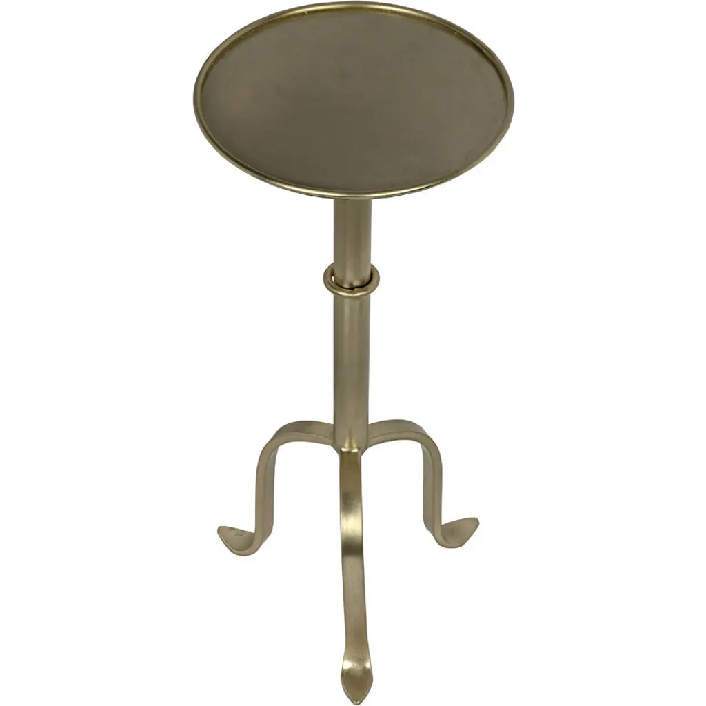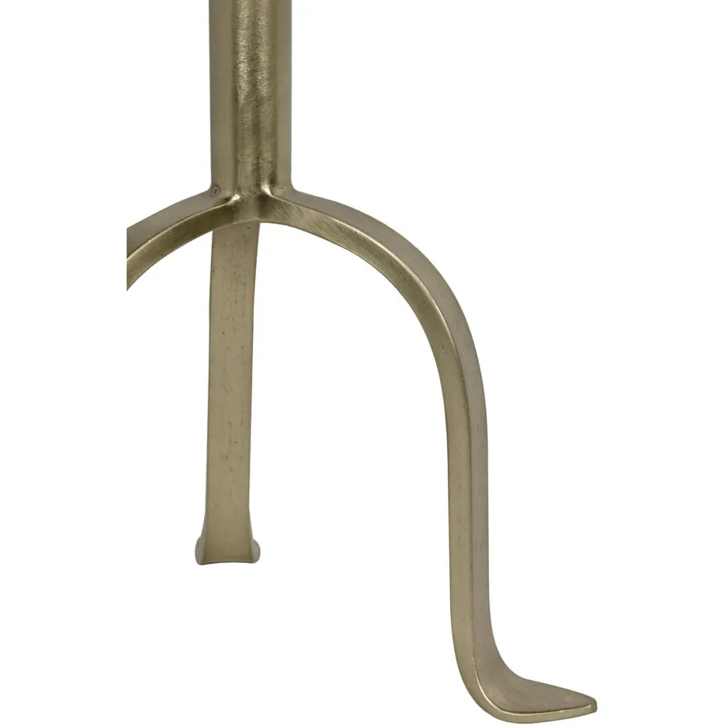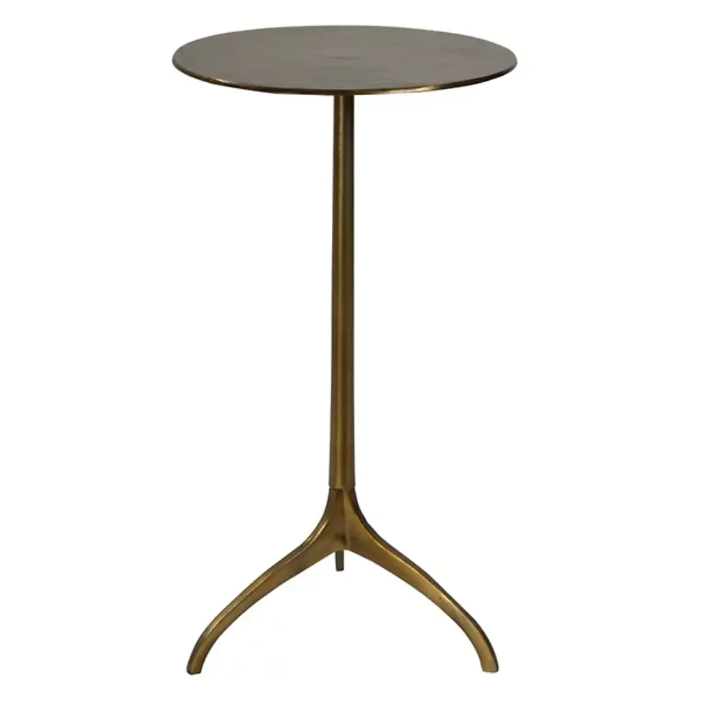 Inspired by Victorian plant stands, our metal side tables perch on three cheekily curved legs and are sized to hold, perhaps a potted plant, or maybe their namesake-a chilled martini Finished in soft antique brass for a warm look perfect for any decor.