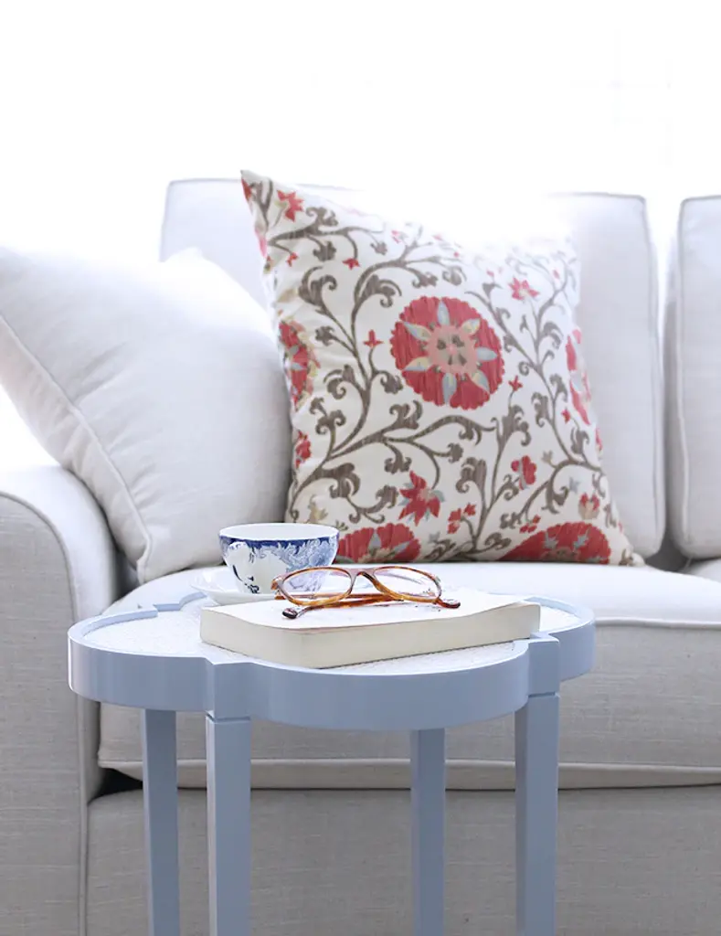 Dimensions: 16W x 16D x 20H One of our most-popular -- this classic quatrefoil, shaped, table is at home anywhere in your palace . . . or apartment! A colorful accent, the tini IV is not only one of our best sellers, it was one of the original pieces we conceived to give “oomph” to any room, any where. Slightly larger than its tini siblings, the tini IV is fabulous between two chairs in the library or next to your tub stacked with fluffy towels. Custom Color Available. No Trade Pricing. Made in America.