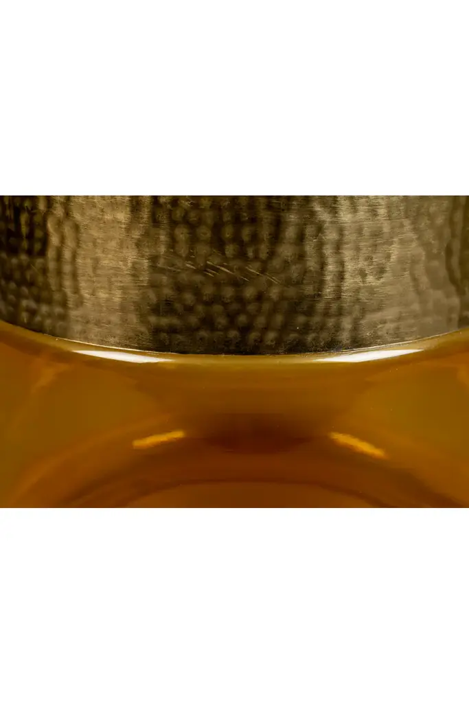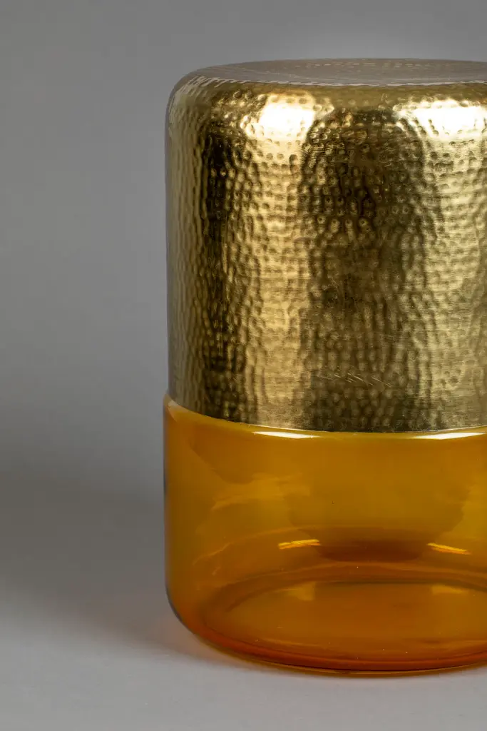 Side table Cave rocks the perfect combination of tinted glass and hammered brass. This pill-like side table is like medicine for dull interiors. Cave works like a charm, in amber or green; we guarantee an instant effect.