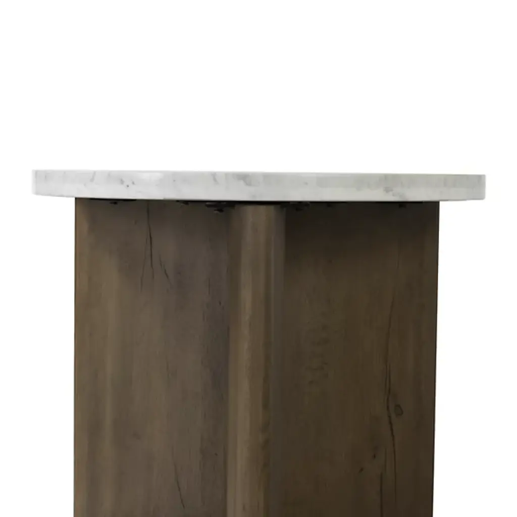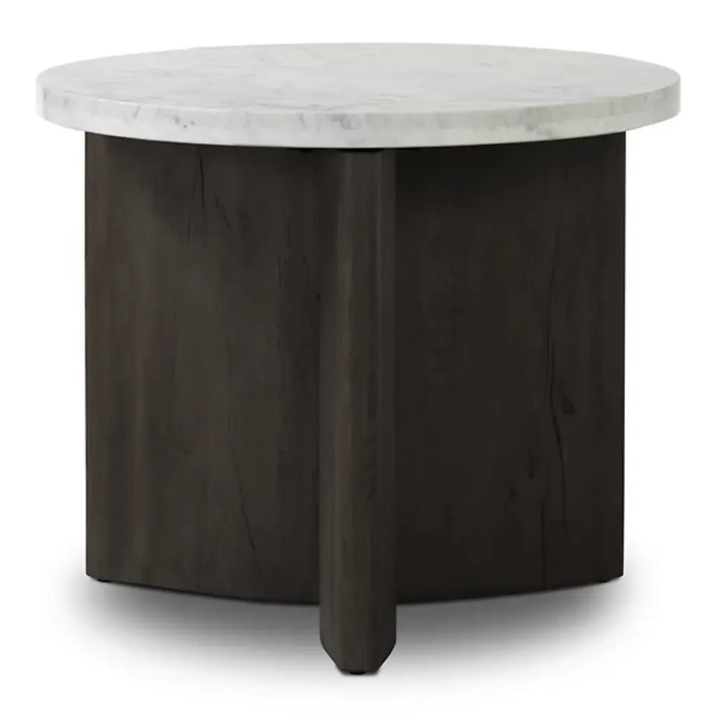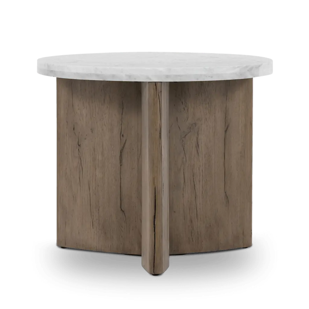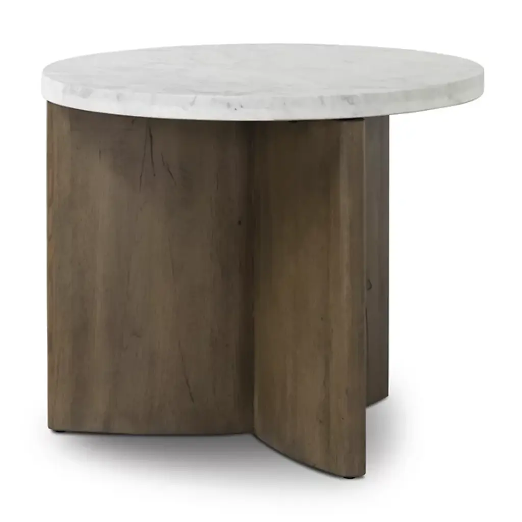 Sleek yet sturdy, the Toli End Table by Four Hands brings contemporary style to any space. The table's smooth Italian white marble top provides an elegant canvas, accented by subtle grey veining that adds depth and visual interest. Below, a tapered oak base crafted from solid wood creates a sturdy foundation. With its mix of natural materials in a modern silhouette, this versatile end table instantly elevates your decor.