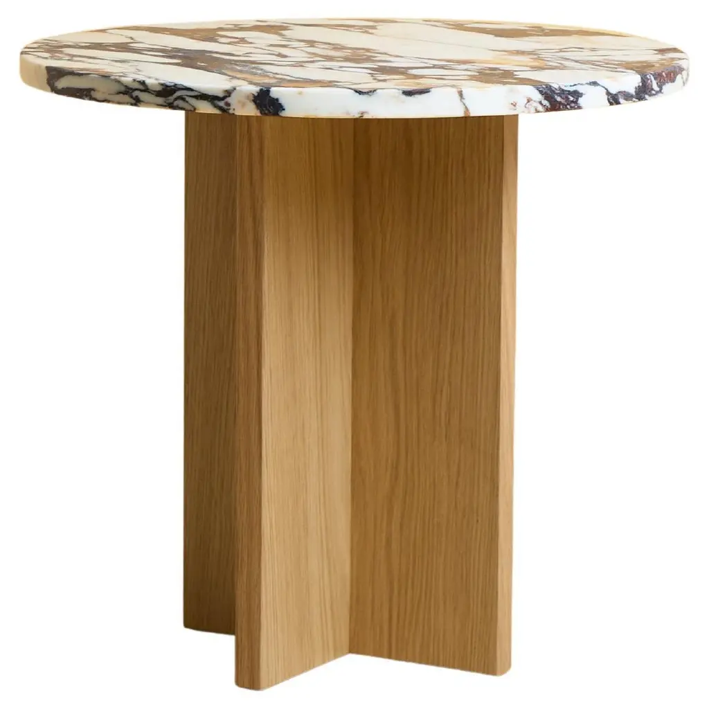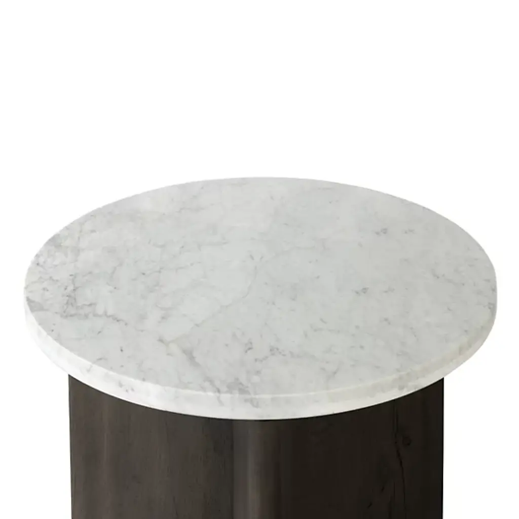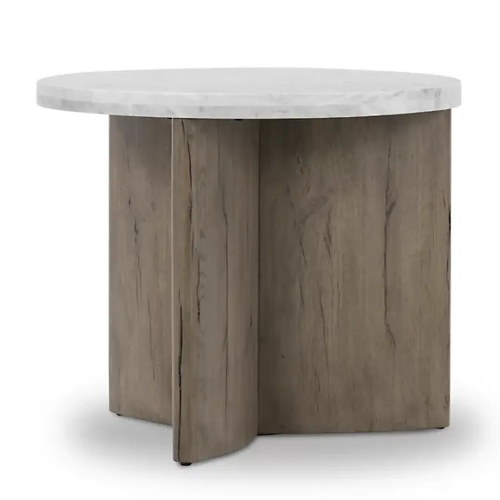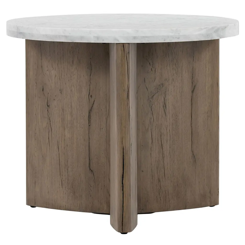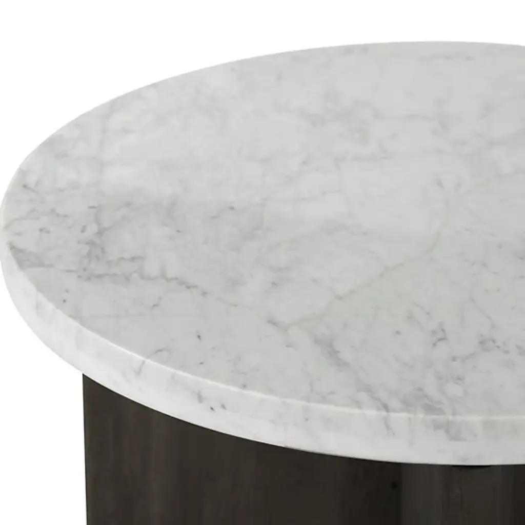 Sleek yet sturdy, the Toli End Table by Four Hands brings contemporary style to any space. The table's smooth Italian white marble top provides an elegant canvas, accented by subtle grey veining that adds depth and visual interest. Below, a tapered oak base crafted from solid wood creates a sturdy foundation. With its mix of natural materials in a modern silhouette, this versatile end table instantly elevates your decor.