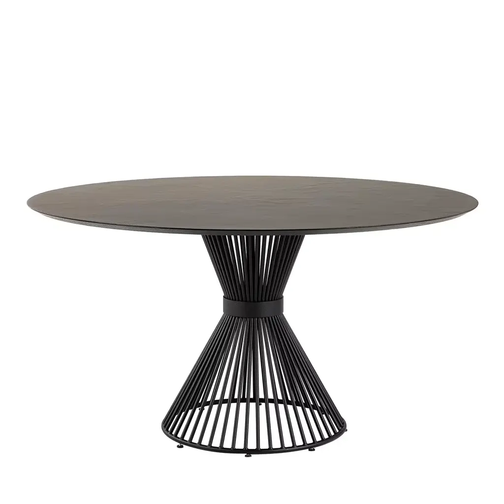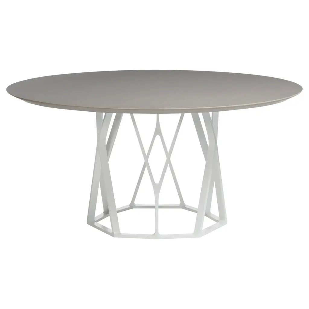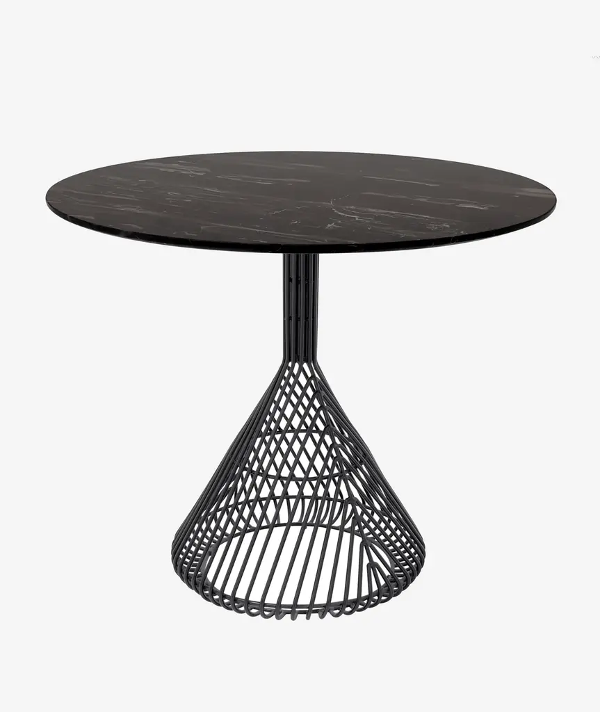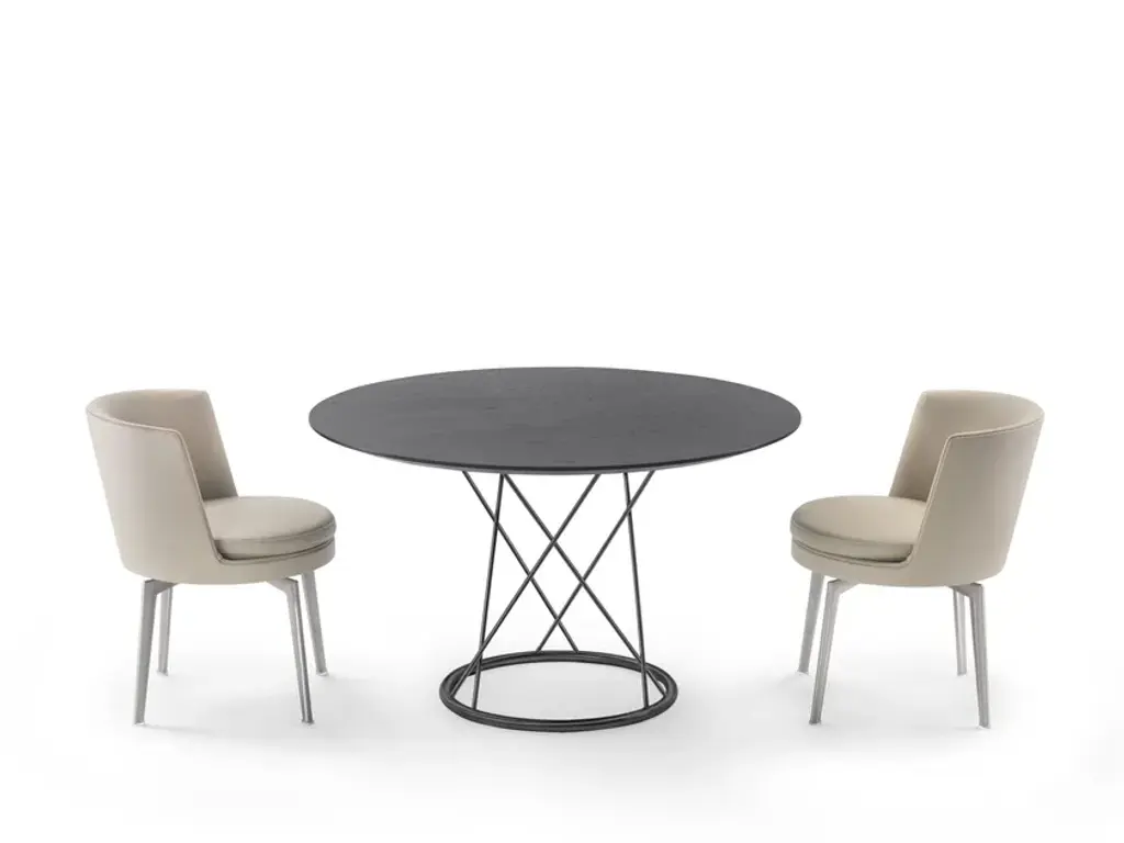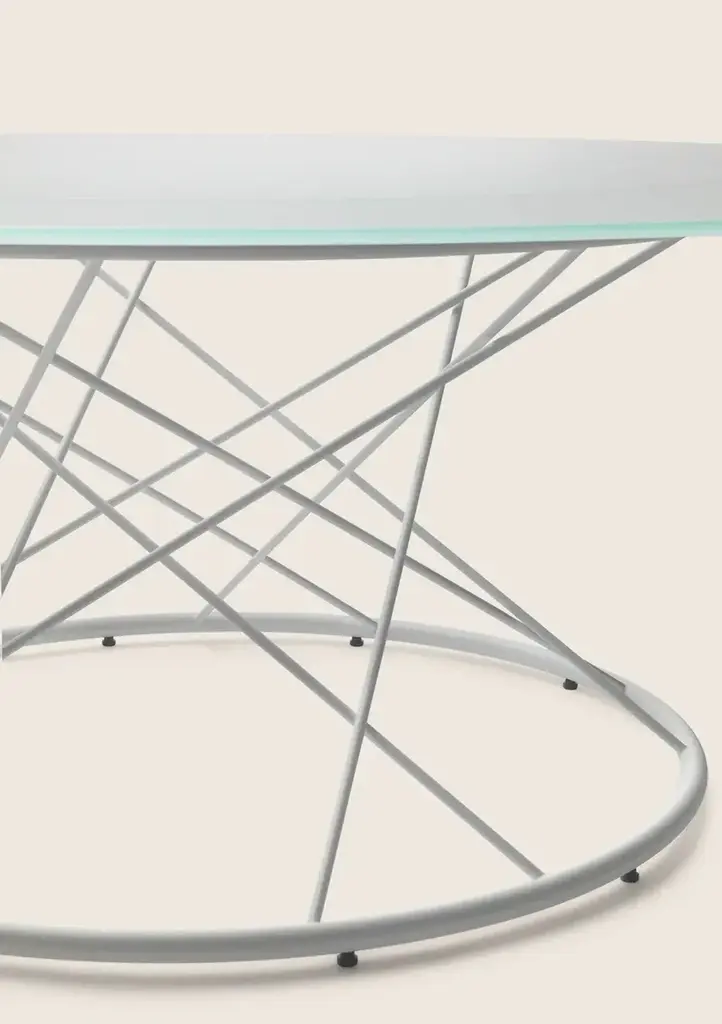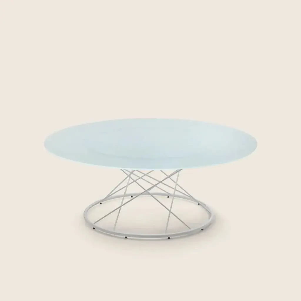 TORCELLO OUTDOOR is a round garden table made of powder-coated steel, available in three sizes.FeaturesTop: in satin-finished tempered glass 2505; or in stone, available in Lavica, Porphyry, Cardoso, and Beola Argentata types. Stone tops feature an underlying support layer in marine-grade plywood.Structure: in stainless steel tubing, oven-painted with epoxy powders in the colors white 100, wine red 405, khaki green 705, burnished, glossy grey 715, matte titanium 710, or in textured finishes: white 300, sand 310, brick 320, sage green 330, terracotta 325, forest green 335, charcoal 350.Feet: resting on adjustable feet made of thermoplastic material.Torcello Outdoor is a collection characterized by a perfect balance between formal elegance and dynamism.The tubular metal structure, powder-coated in a range of sophisticated colors, stands out for the refined interplay of lines in the base, which on one hand provides structural stability, while on the other adds lightness and movement to the composition.The tops of the dining tables, offered in various diameter sizes, range from the transparency of glass to the materiality of stone.For the side tables, the top is exclusively offered in ceramic, available in a range of refined colors.
