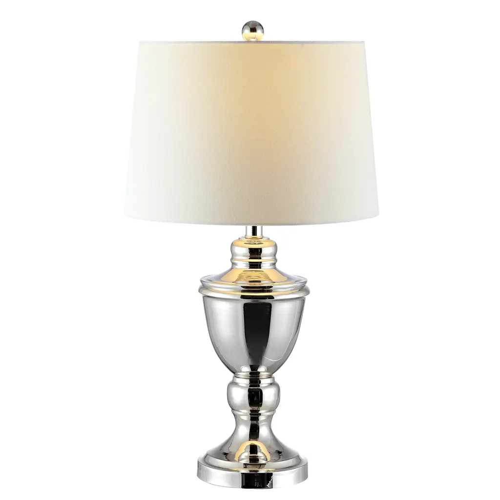 Toronto is Port 68's modern tapered turned metal lamp. Available in polished nickel with accents of aged brass hardware. This lamp offers a multiple of finish choices on this smartly scaled lamp. Perfect for your bedside, sofa end table or a pair on the console. Lamp base measures: 6.5" x 6.5" x 1.25"H. Polished nickel cylinder shaped finial. 3 way switch. 100 watt max bulb. Shade: Hardback shade with top and bottom single fold self trim. 15" X 17" X 11"SH. Beige polyester fabric. Brass spider. Materials: Steel, Asian hardwood Overall Size: 33"H x 17"D Ships via UPS Free shipping in the U.S.
