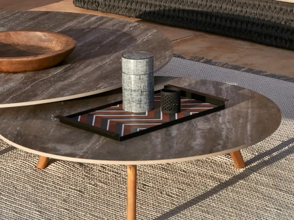 Torsa is the epitome of sophistication: slender and light. The sculpted wooden base is combined with a tabletop made of faux marble or monochrome ceramic. A relaxing coffee break, a festive banquet or jolly aperitif: Torsa tables turn any occasion into a moment to remember. Thanks to its understated size, Torsa is apt for small or large spaces and is multi-functional.