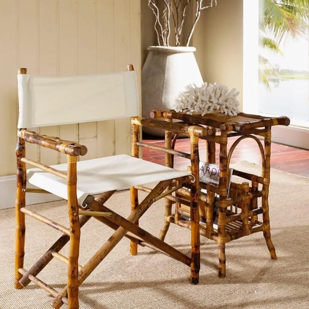 Tortoise Shell Bamboo And Rattan Magazine Side Table